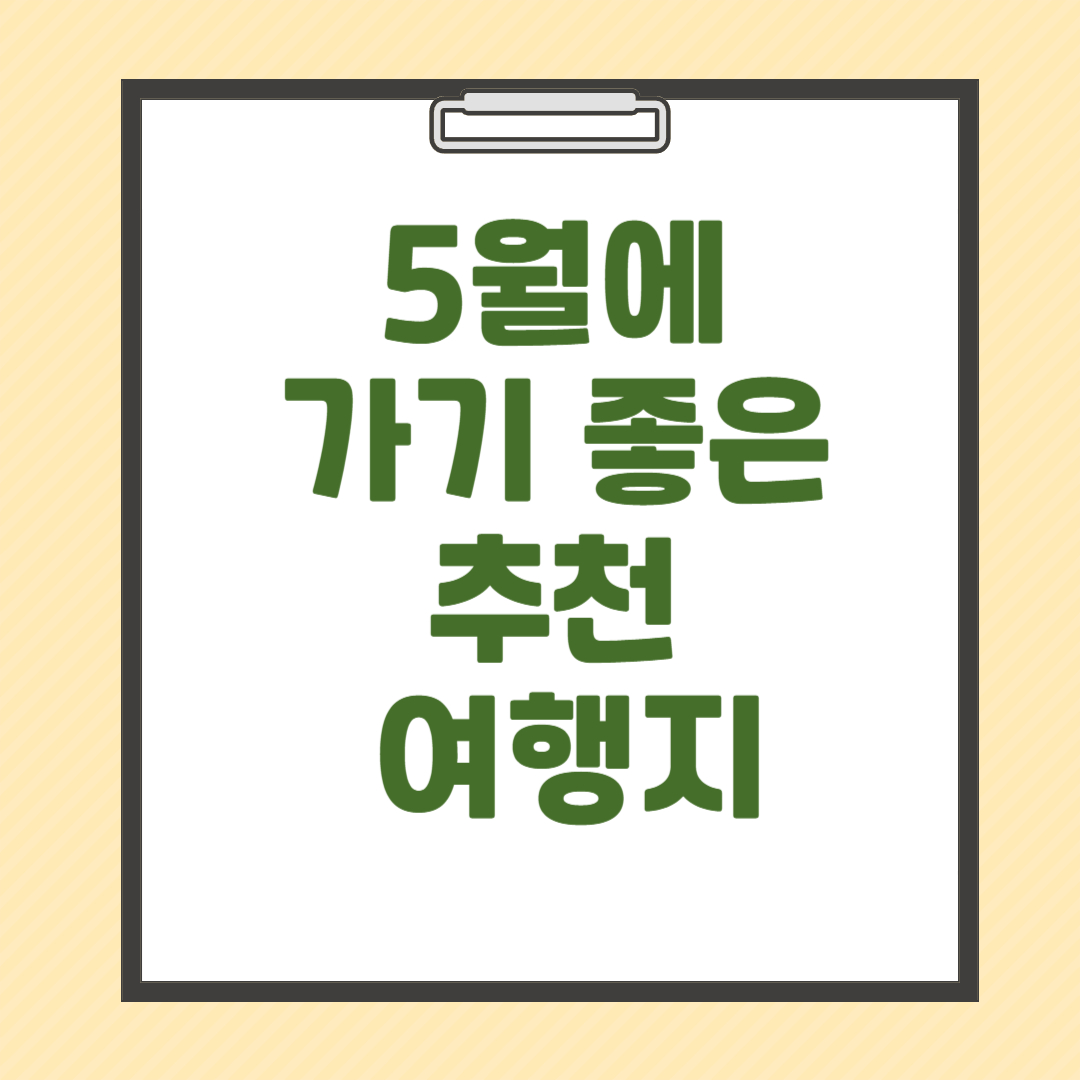 5월은 여행하기 가장 아름다운 계절입니다. 국내든 해외든, 자연과 문화, 축제를 골고루 경험할 수 있는 다양한 여행지를 추천드렸습니다. 이제 이 가이드를 바탕으로 여행 계획을 세우고, 특별한 추억을 만들어보세요.