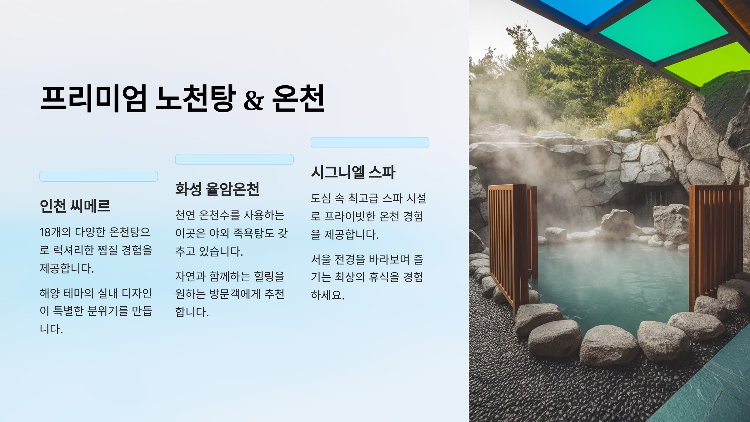 찜질방 겸 프리미엄 목욕탕은 단순한 장소가 아니라 하나의 라이프스타일로 자리 잡고 있어요. 친구와 수다, 가족과 휴식, 혼자만의 재충전 모두 가능한 공간이라 매력적이에요.