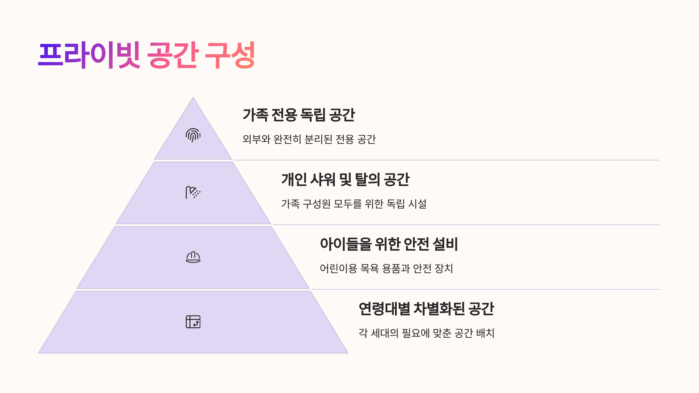내가 생각했을 때 가족 단위 외출 시 가장 중요한 건 '개별 공간'의 유무인 것 같아요. 눈치 보지 않고 쉴 수 있는 공간이 진짜 필요하더라고요. 👨👩👧👦