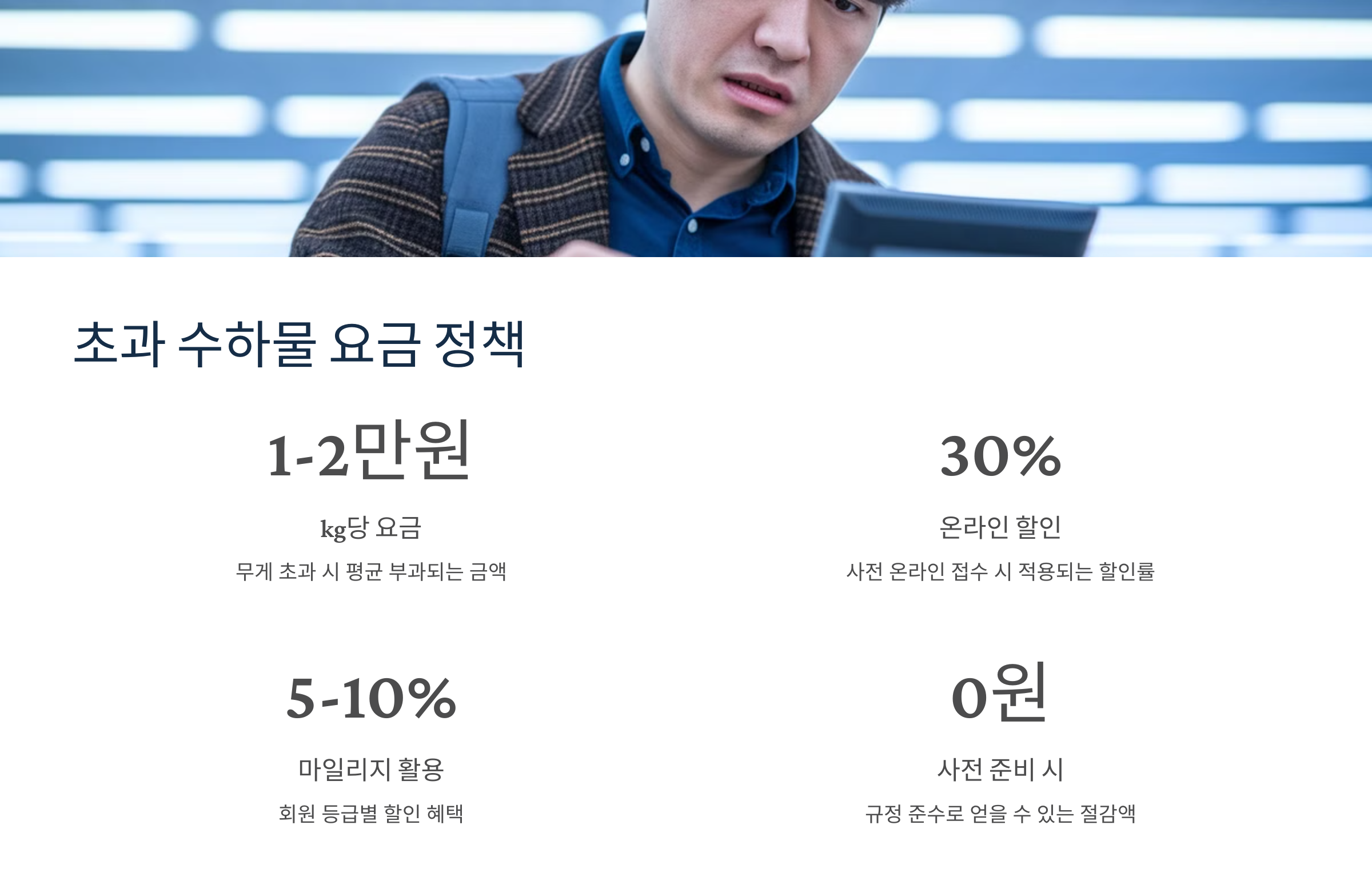 초과 요금은 사전 결제 시 훨씬 저렴해요. 출발 하루 전까지 항공사 홈페이지나 앱에서 추가 수하물 옵션을 미리 구매하면 공항보다 30~50% 저렴하게 해결할 수 있어요.
