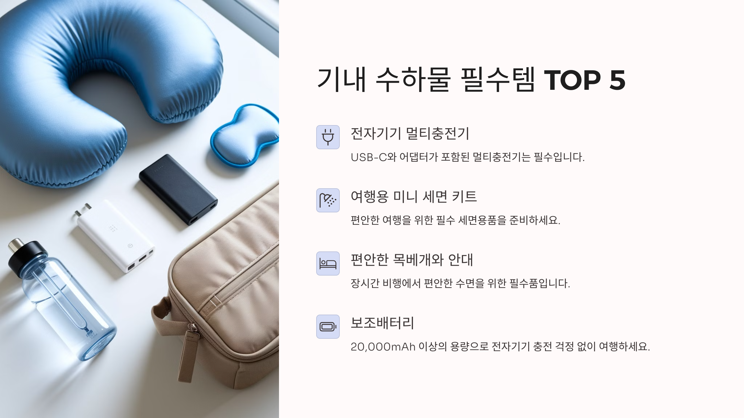 기내 환경에 맞춘 완벽 준비 리스트 바로 확인 가능해요.