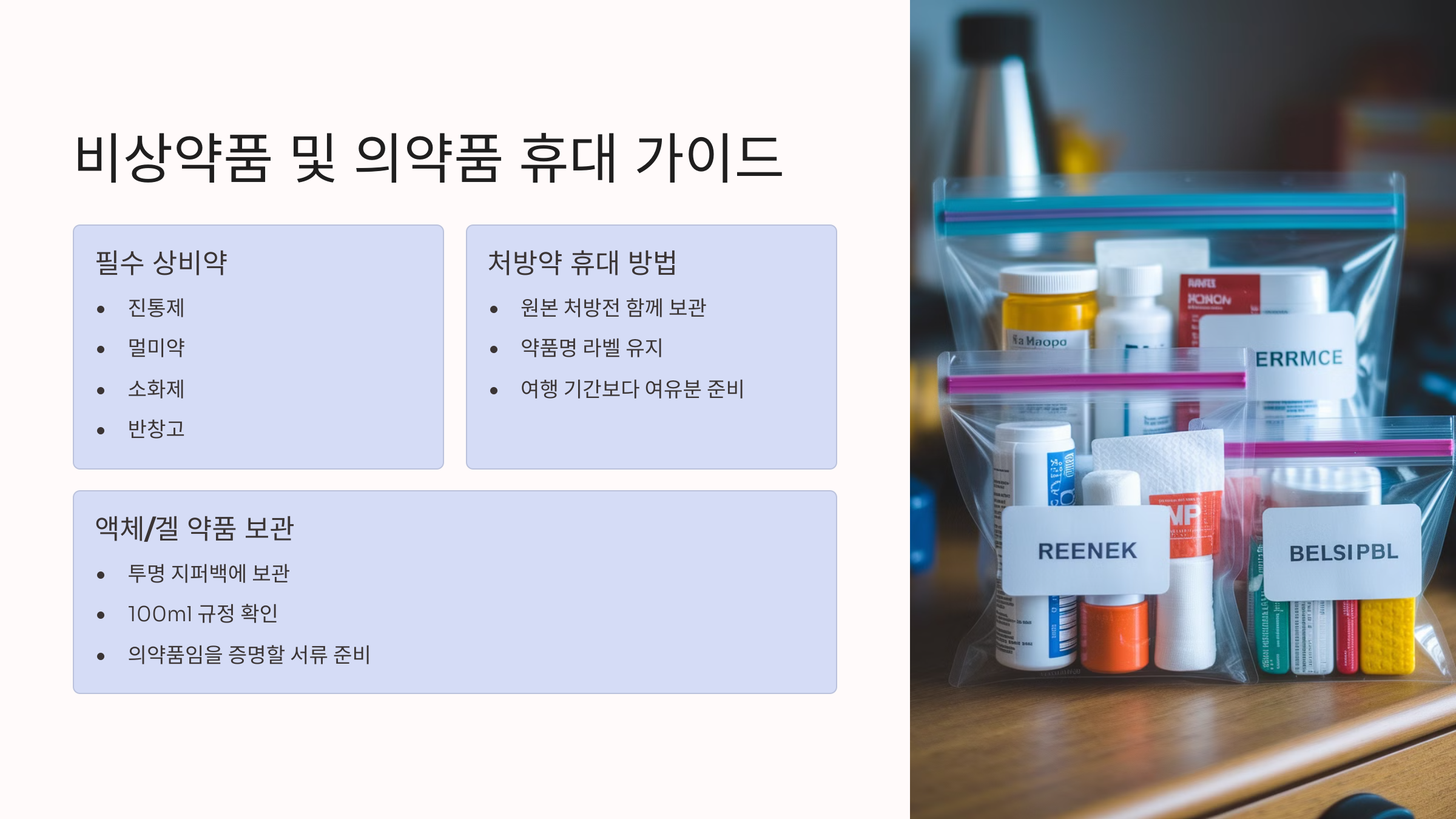 여기서 중요한 건 ‘규정’을 지켜야 한다는 점이에요. 기내에 가지고 들어갈 수 있는 의약품은 일반약은 자유롭지만, 처방약은 소지 이유와 처방전이 필요할 수 있어요. 특히 해외 여행 시 규정이 더 까다로워요.