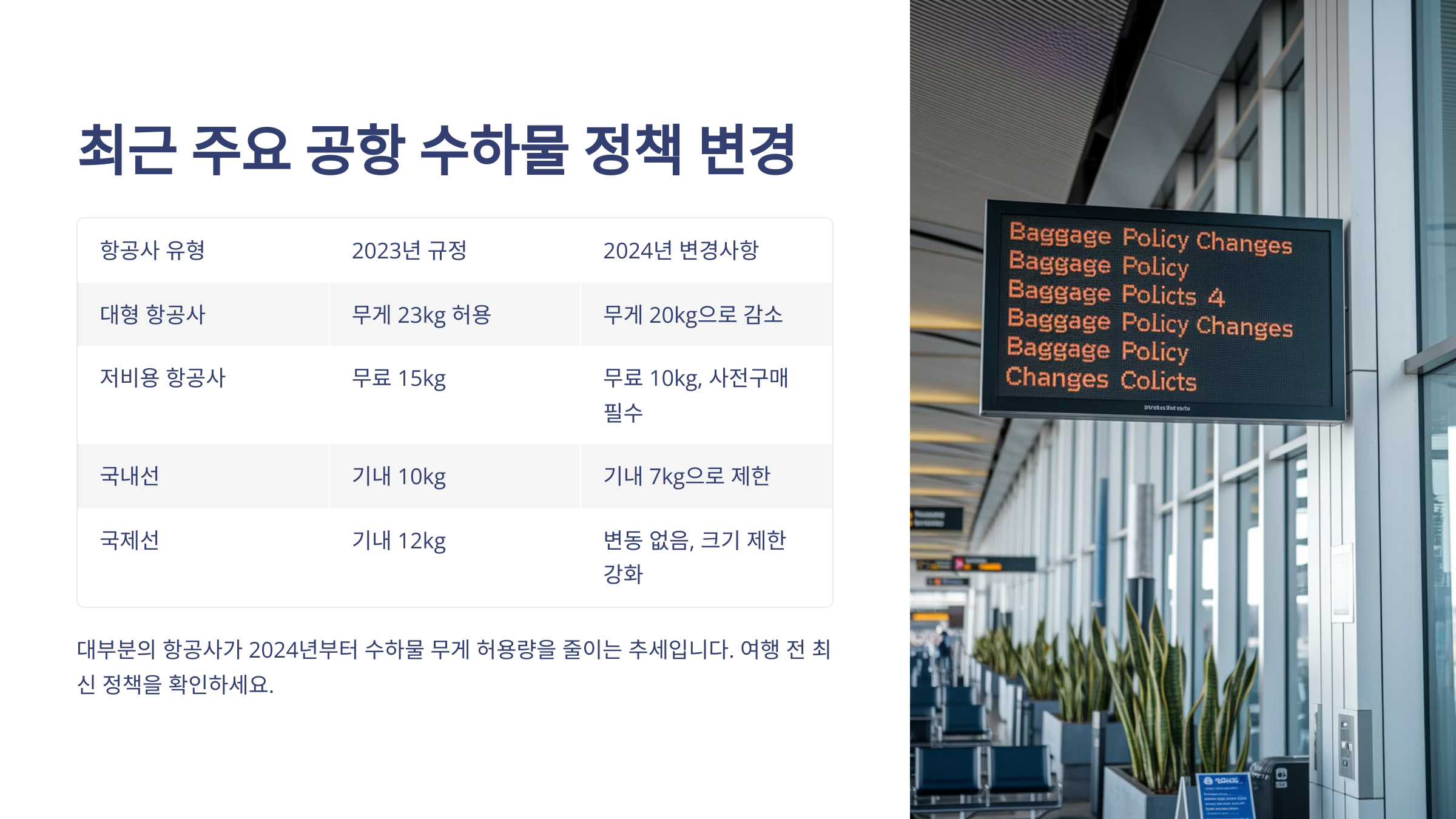 📢 공항 수하물 정책 변경 사례