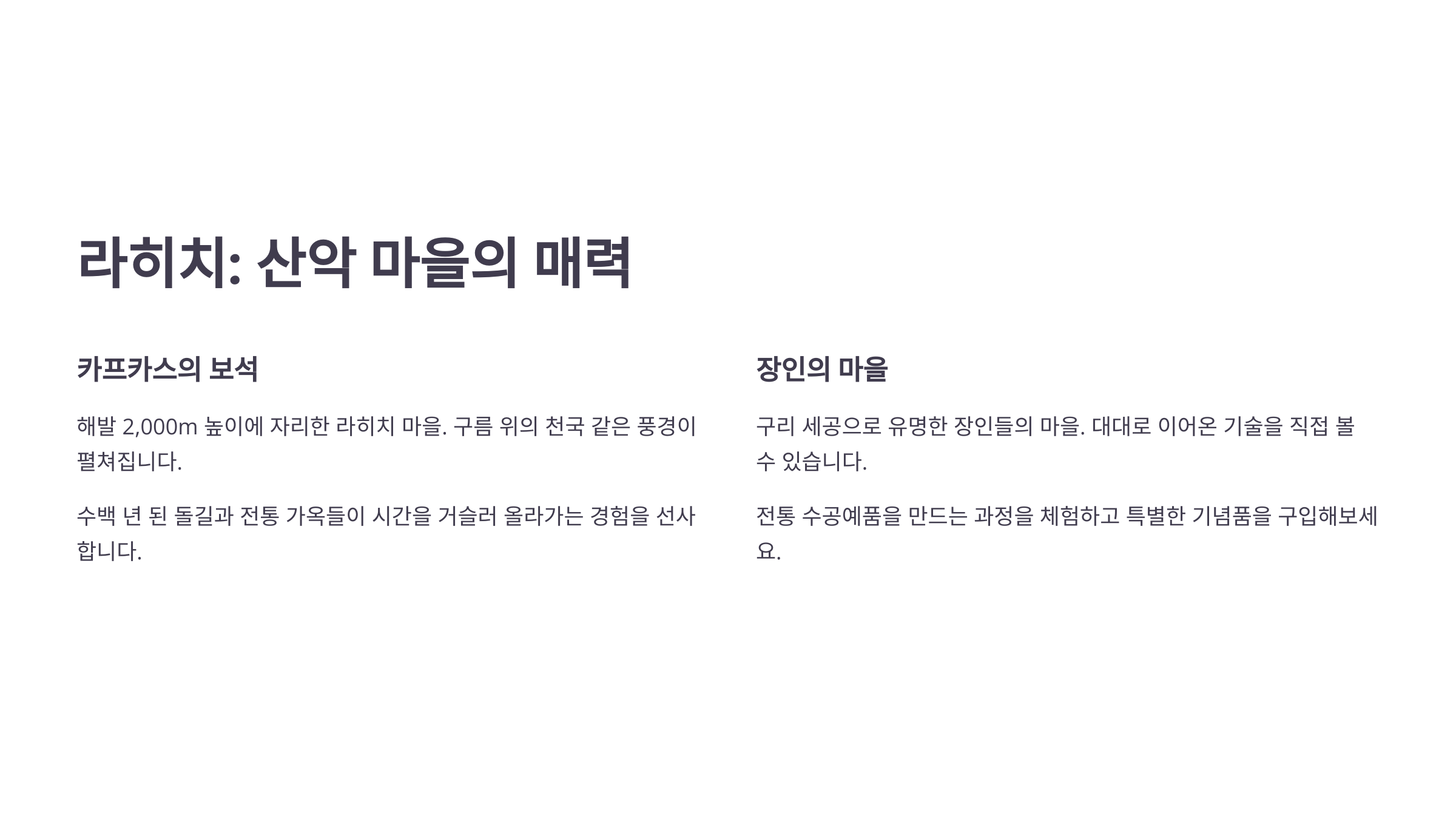 | 라히치 골목 | 전통 돌길 감성 | 오전 자연광 |