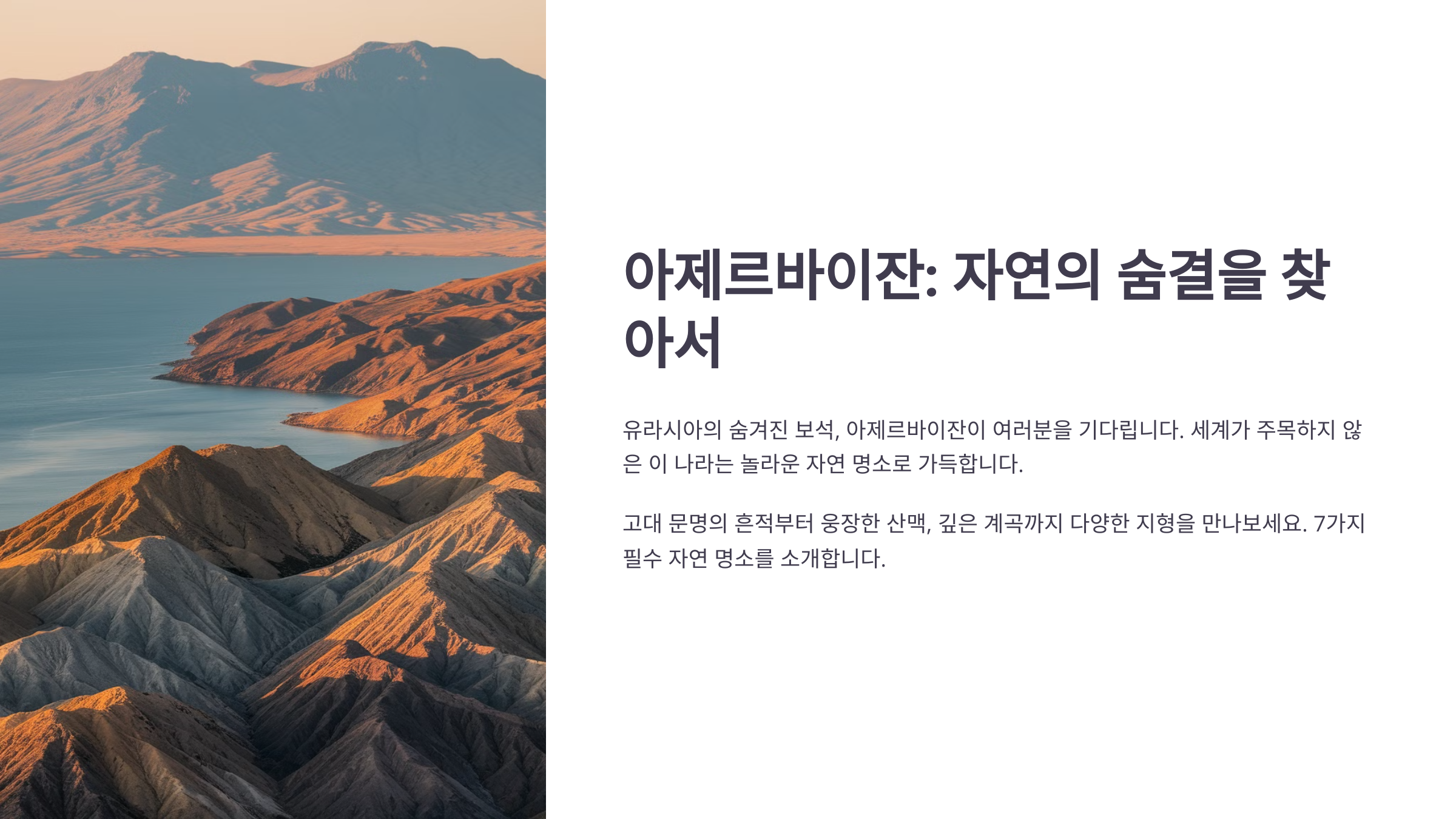 아제르바이잔은 산, 바다, 사막, 마을이 모두 어우러진 풍경 덕분에 사진 찍기 좋은 명소가 넘쳐나요. SNS 감성 사진이나 여행 브이로그에 등장할만한 포인트도 많고요. 여행자들 사이에서 입소문 난 ‘비밀 포토존’도 많으니 오늘 여기서 다 소개해볼게요 😊