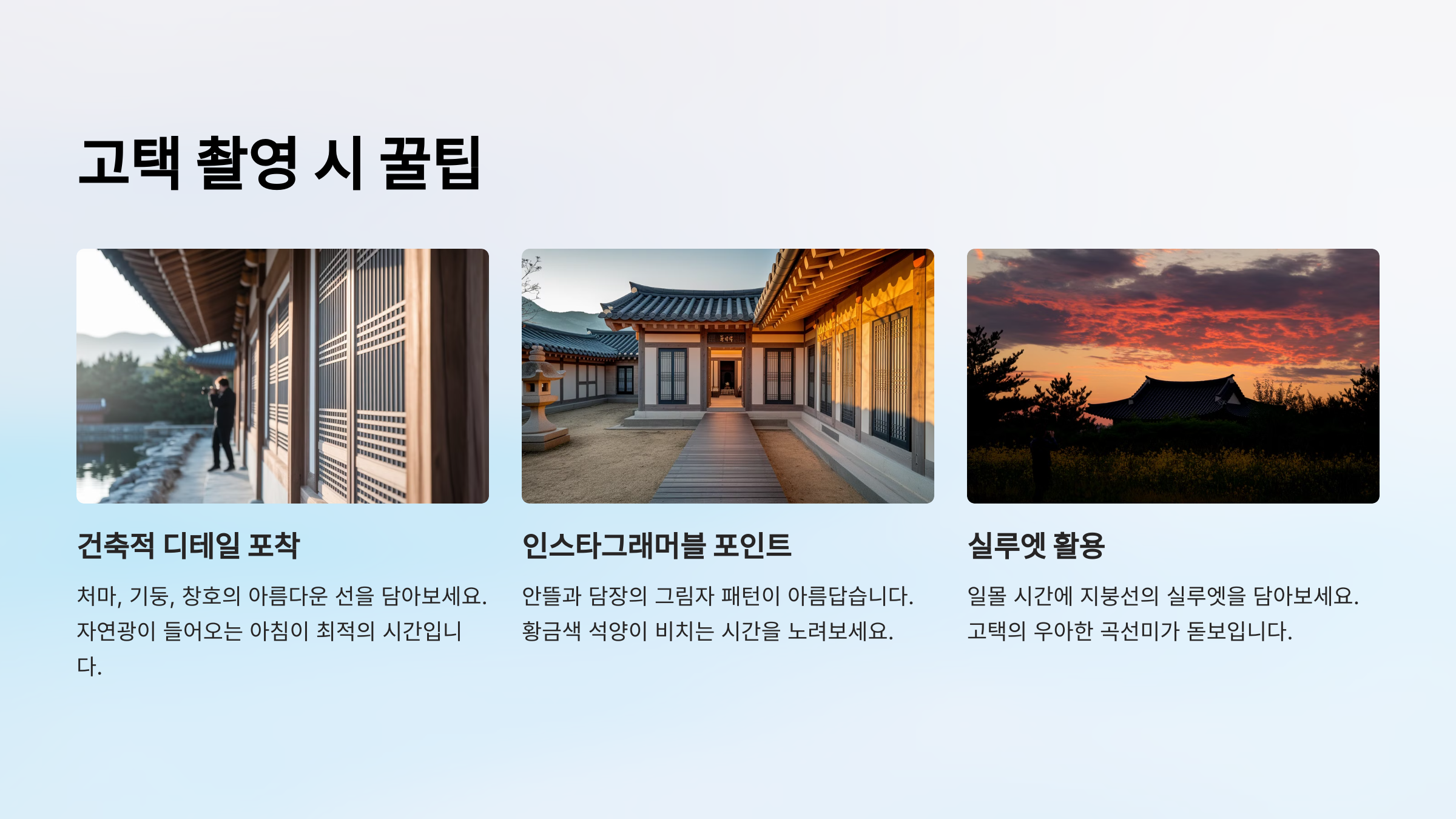 📸 고택 촬영 포인트 요약