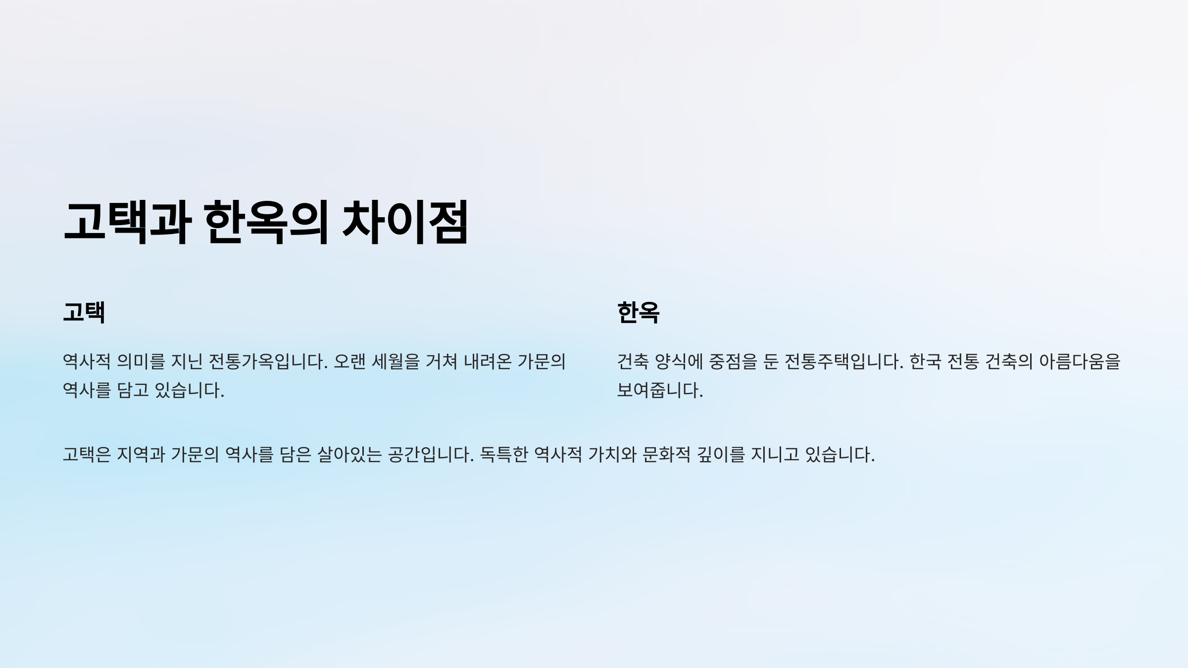📚 고택 vs 한옥 차이표