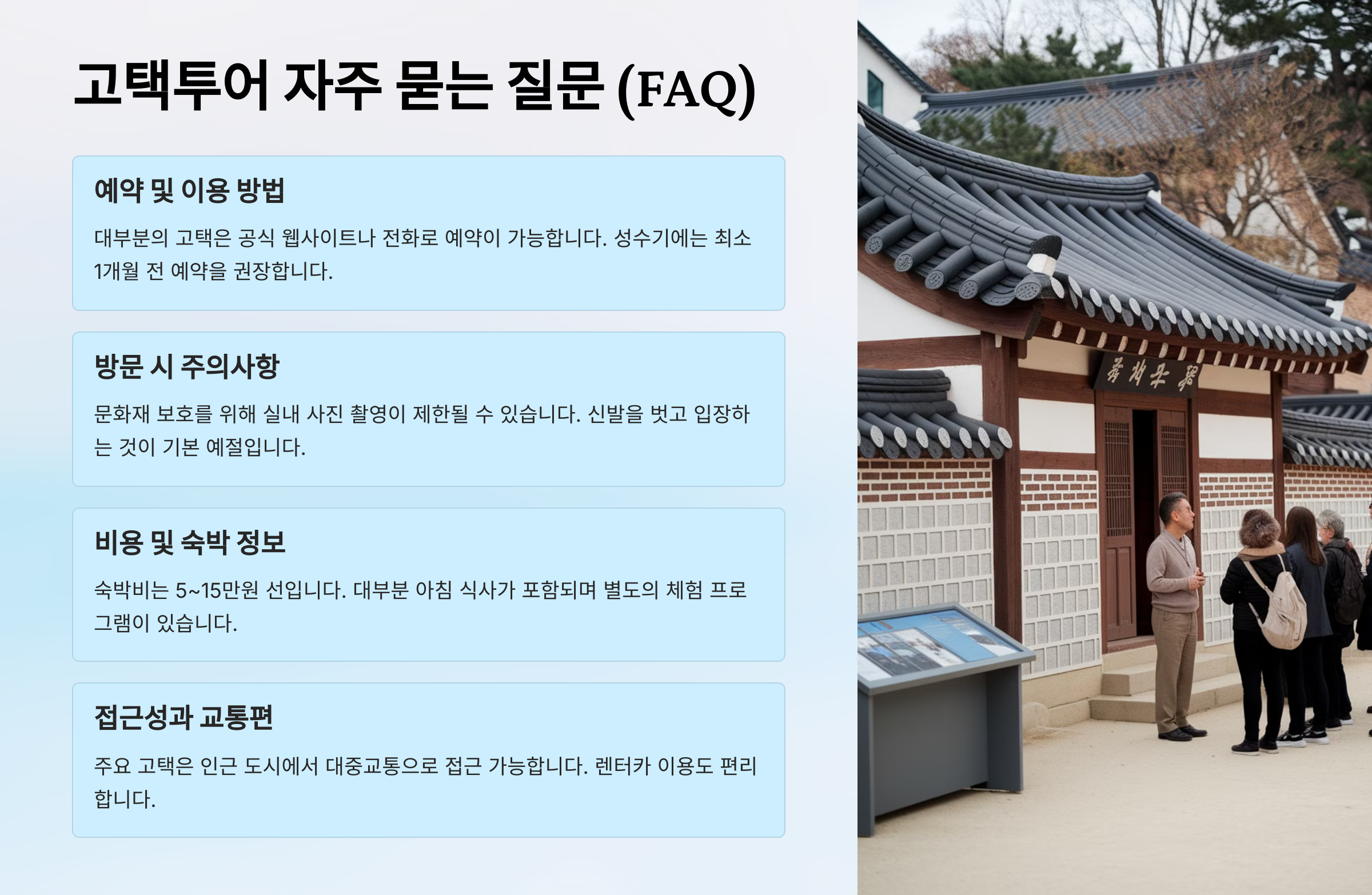 ❓ 고택투어 자주 묻는 질문 (FAQ)
