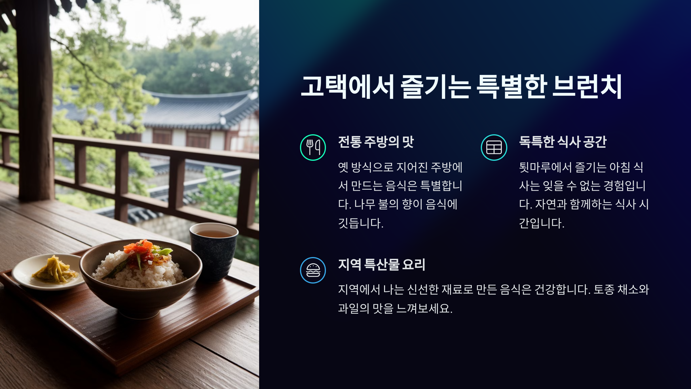 | 강릉 | 모던한옥 아카이브 | 제철 재료 + 정원뷰 |