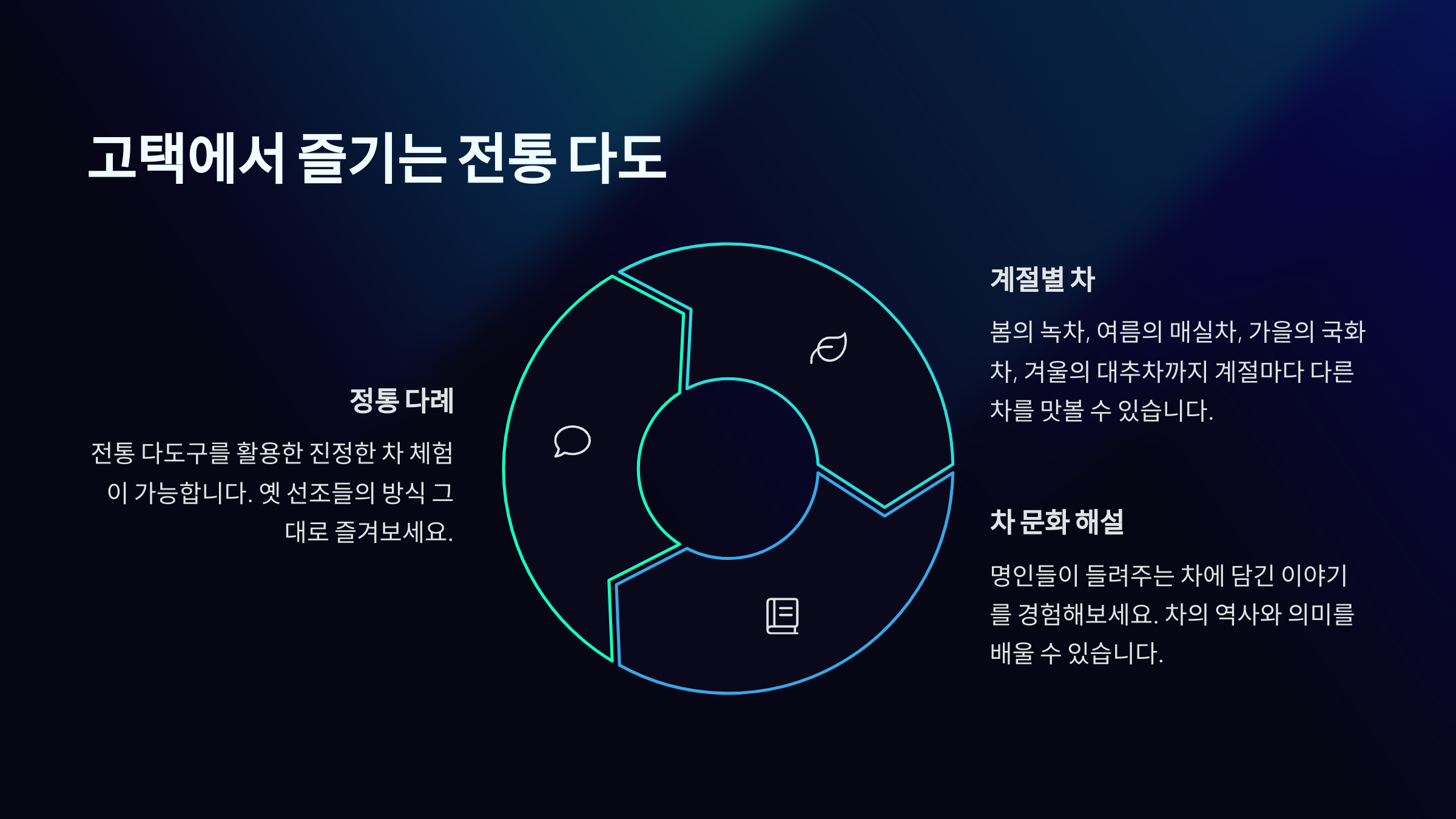 전통 다도는 단순히 ‘고즈넉함’이라는 말로는 부족해요. 앉아 있는 그 순간, 바람의 결까지 차를 우릴 만큼의 여유가 필요하죠. 고택의 낮은 처마와 기와지붕 아래에서 차를 마시는 경험은, 한 폭의 동양화를 보는 듯한 감성을 자극해요.