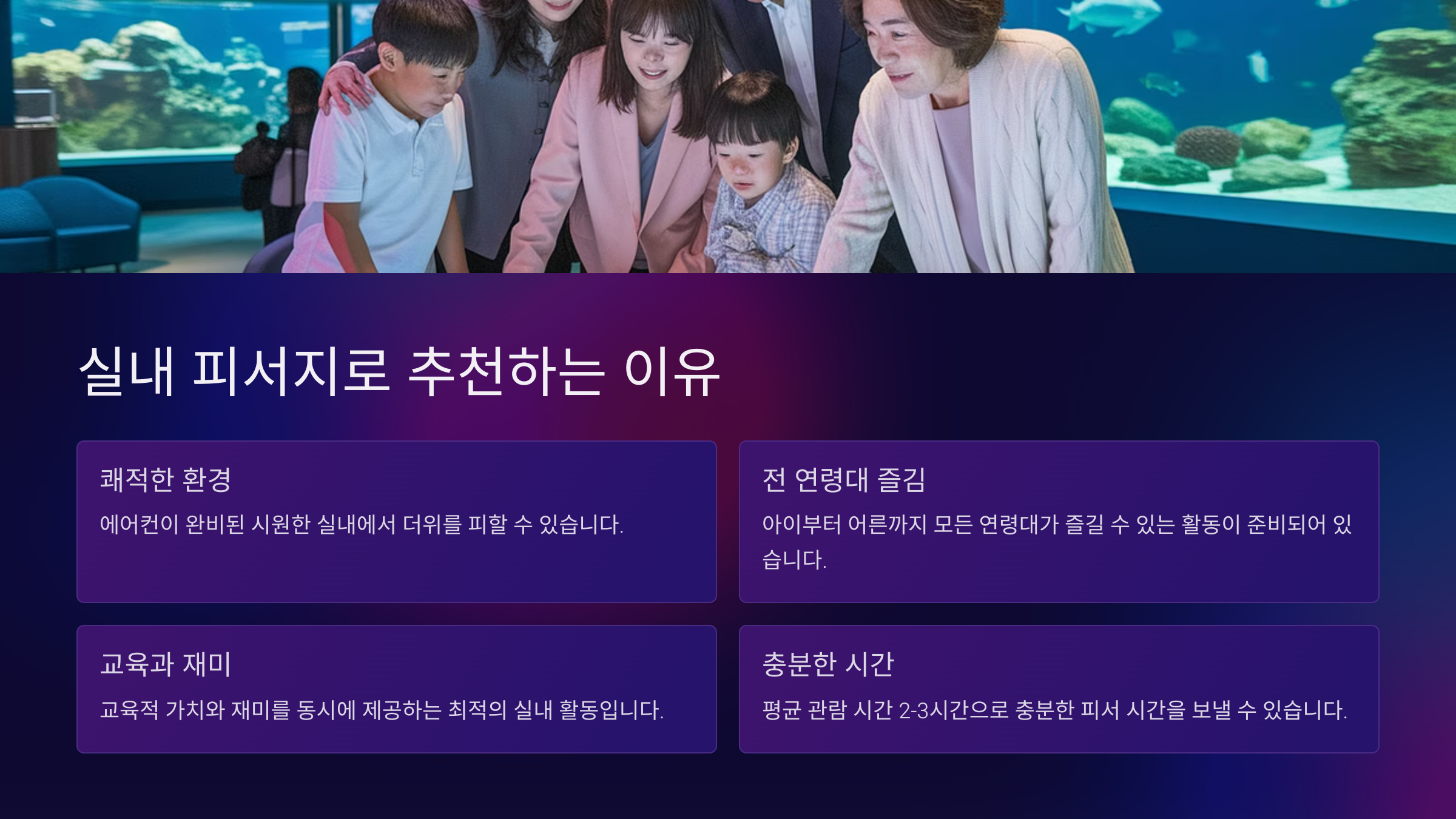 무더운 여름, 많은 사람들이 실외보다는 실내에서 피서를 즐기려 해요. 그 이유는 단순히 더위 때문만이 아니라, 시간과 비용을 절약하면서도 질 높은 힐링을 누릴 수 있기 때문이에요. 수족관은 그런 점에서 완벽한 실내 피서지죠. 🌈