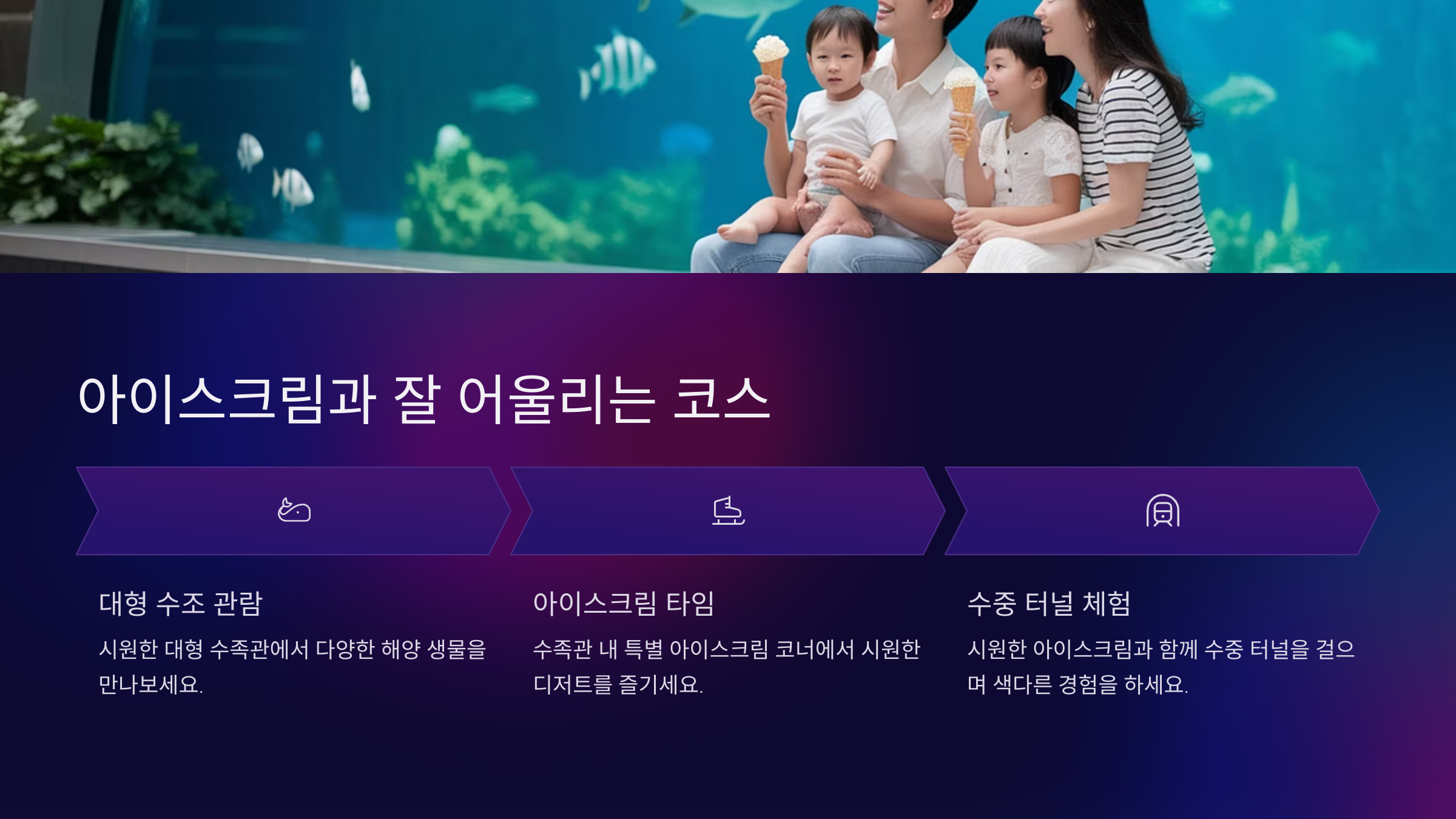 수족관 관람은 보통 1~2시간 정도가 소요되기 때문에, 관람 전후 시점에 맞춰 시원한 디저트를 곁들이면 더욱 만족도가 높아져요. 특히 무더운 날에는 아이스크림 하나가 피서 효과를 업그레이드시켜 준답니다.