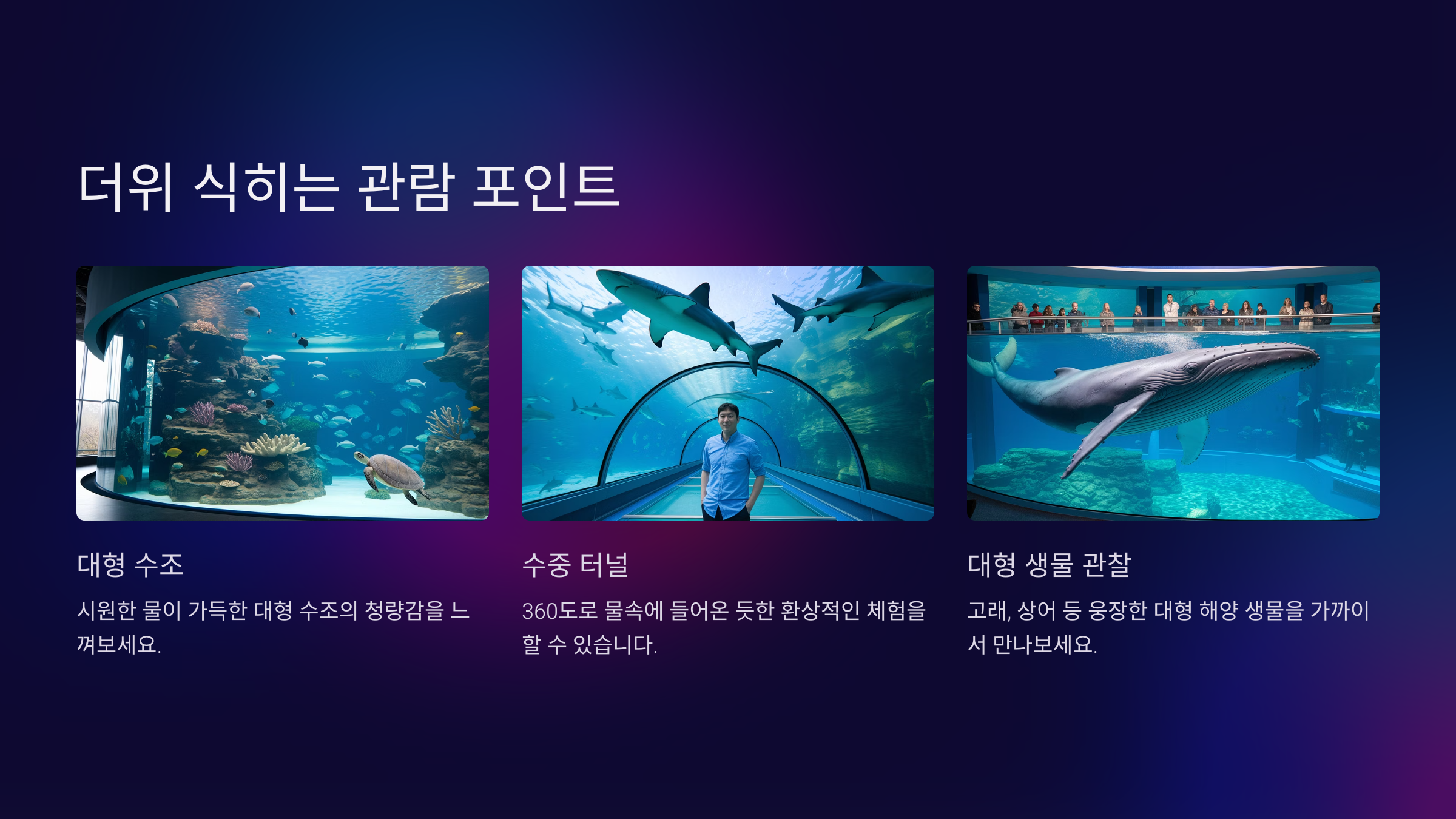 | 야광 해파리 쇼 | 형광 조명과 해파리의 몽환적 움직임 |