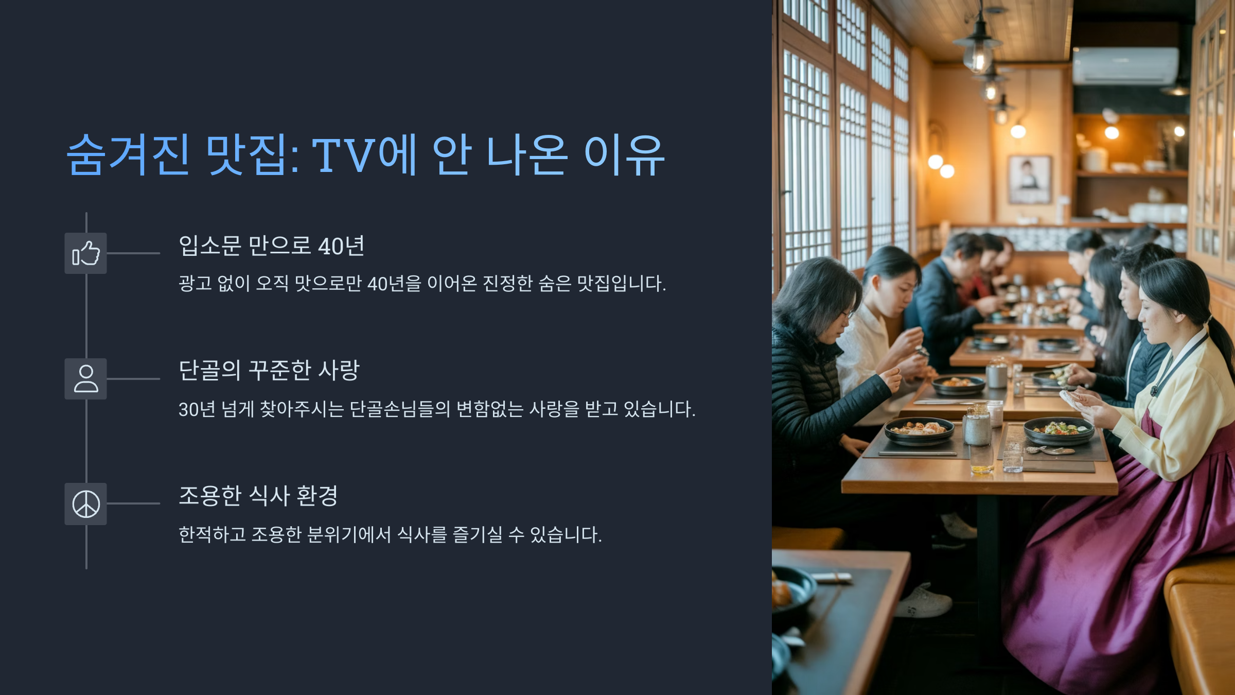 다음은 그렇게 정성 가득한 음식들이 조용히 알려진 숨은 맛집들에 대해 이야기해볼게요. 유명하진 않지만, 단골들에겐 보석 같은 백반집이 많답니다! ✨