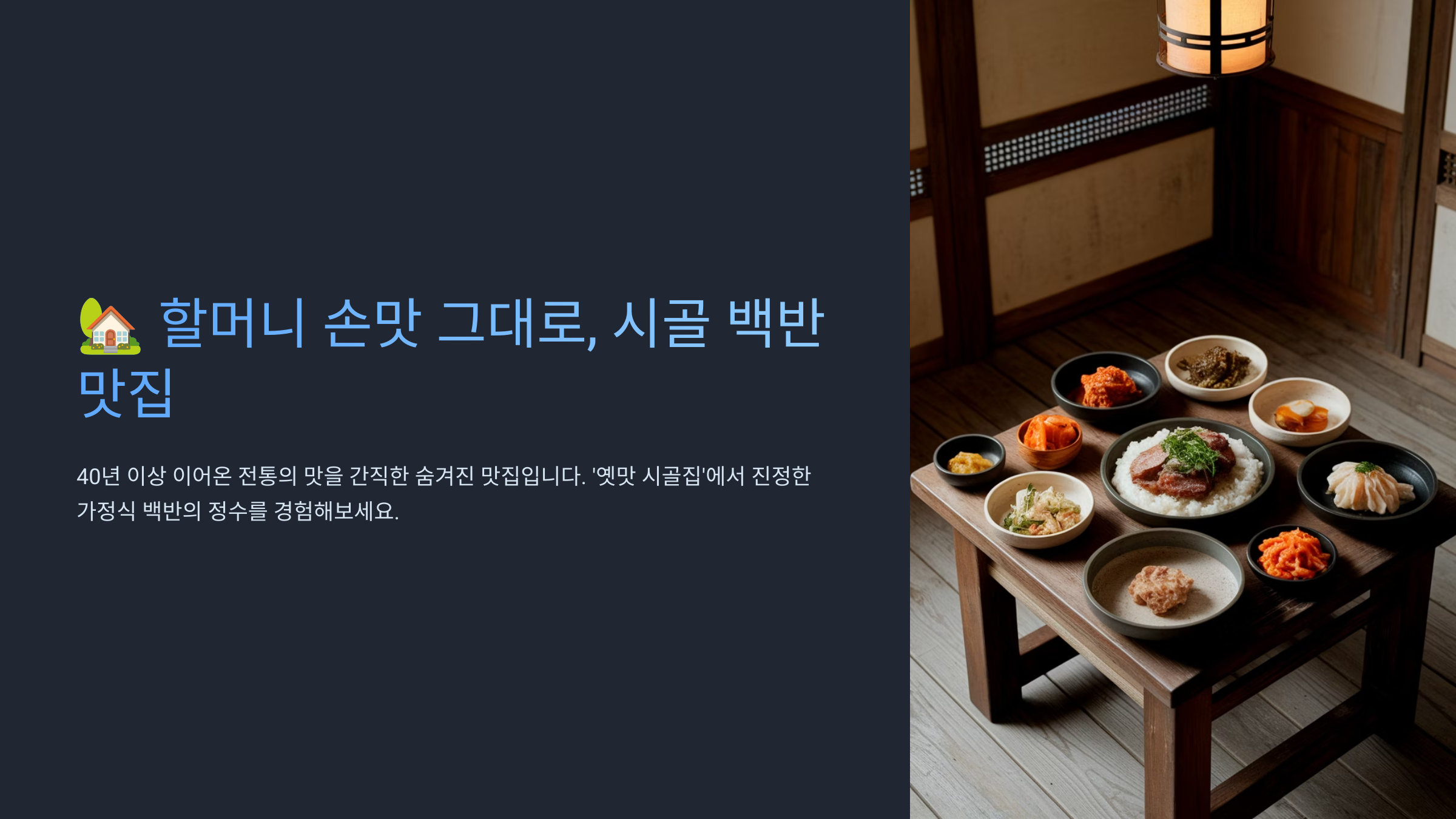 지금부터 그리운 고향의 맛, 할머니 손맛이 그대로 살아 있는 백반집의 매력을 자세히 소개해볼게요. 🤗