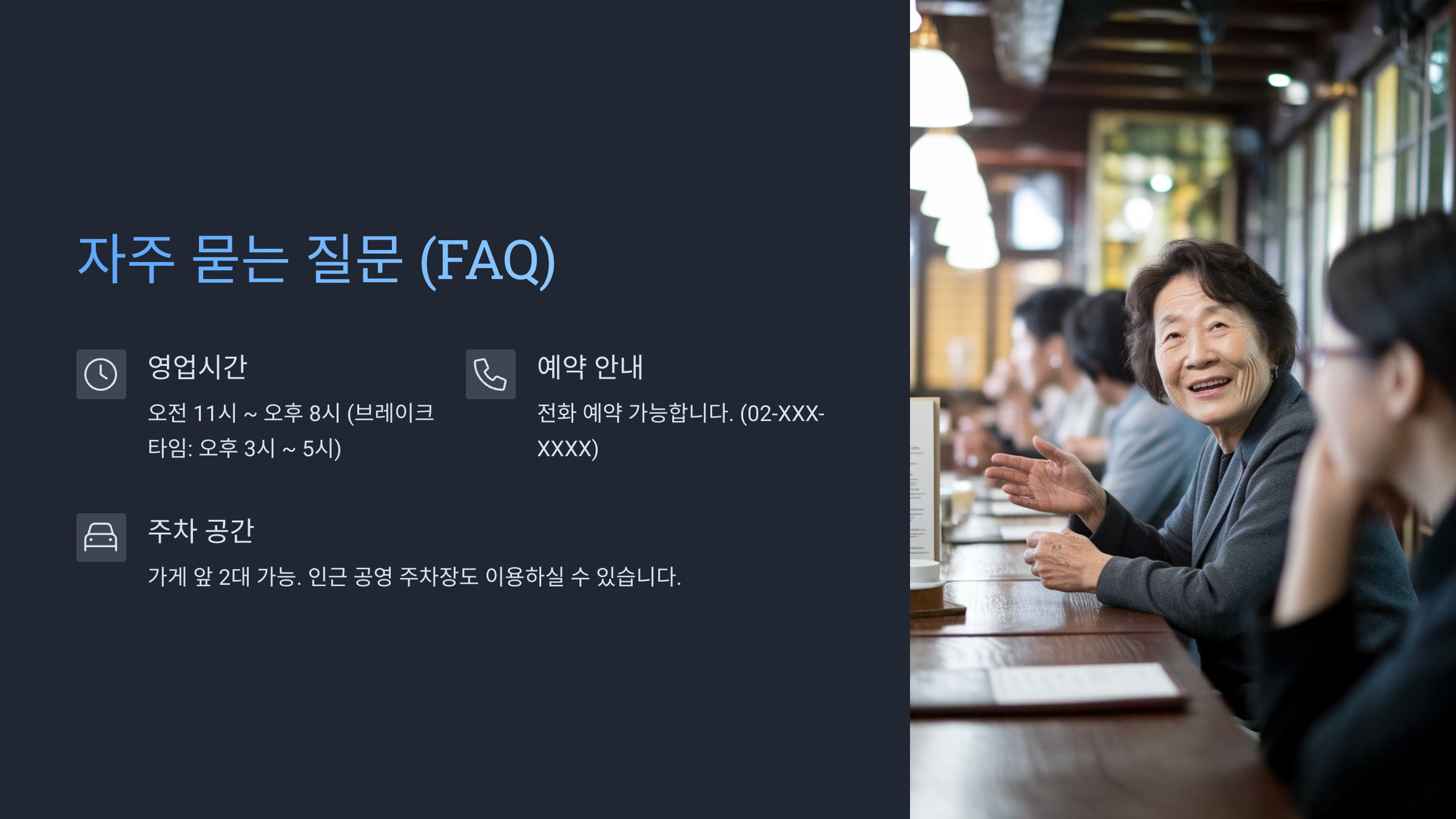 이제 마지막 섹션! 시골 백반과 관련된 자주 묻는 질문 FAQ 정리해드릴게요. 궁금했던 점들, 여기서 한 방에 해결하세요! 📝