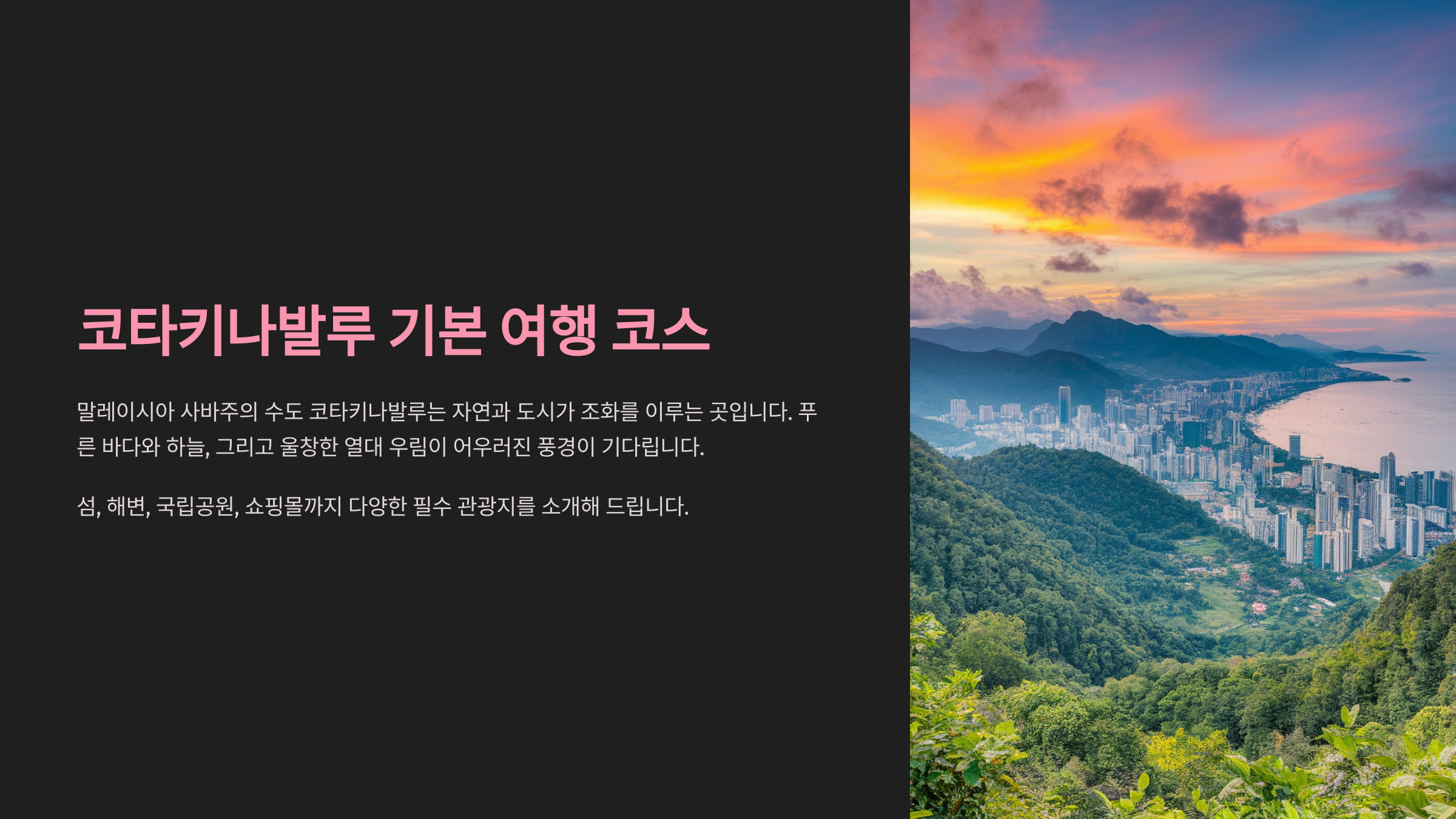 저는 코타키나발루를 다녀오고 나서 '자연과 도심의 조화가 이렇게 아름다울 수 있구나'라고 느꼈답니다. 가족들과 꼭 다시 오고 싶은 여행지 1순위예요!