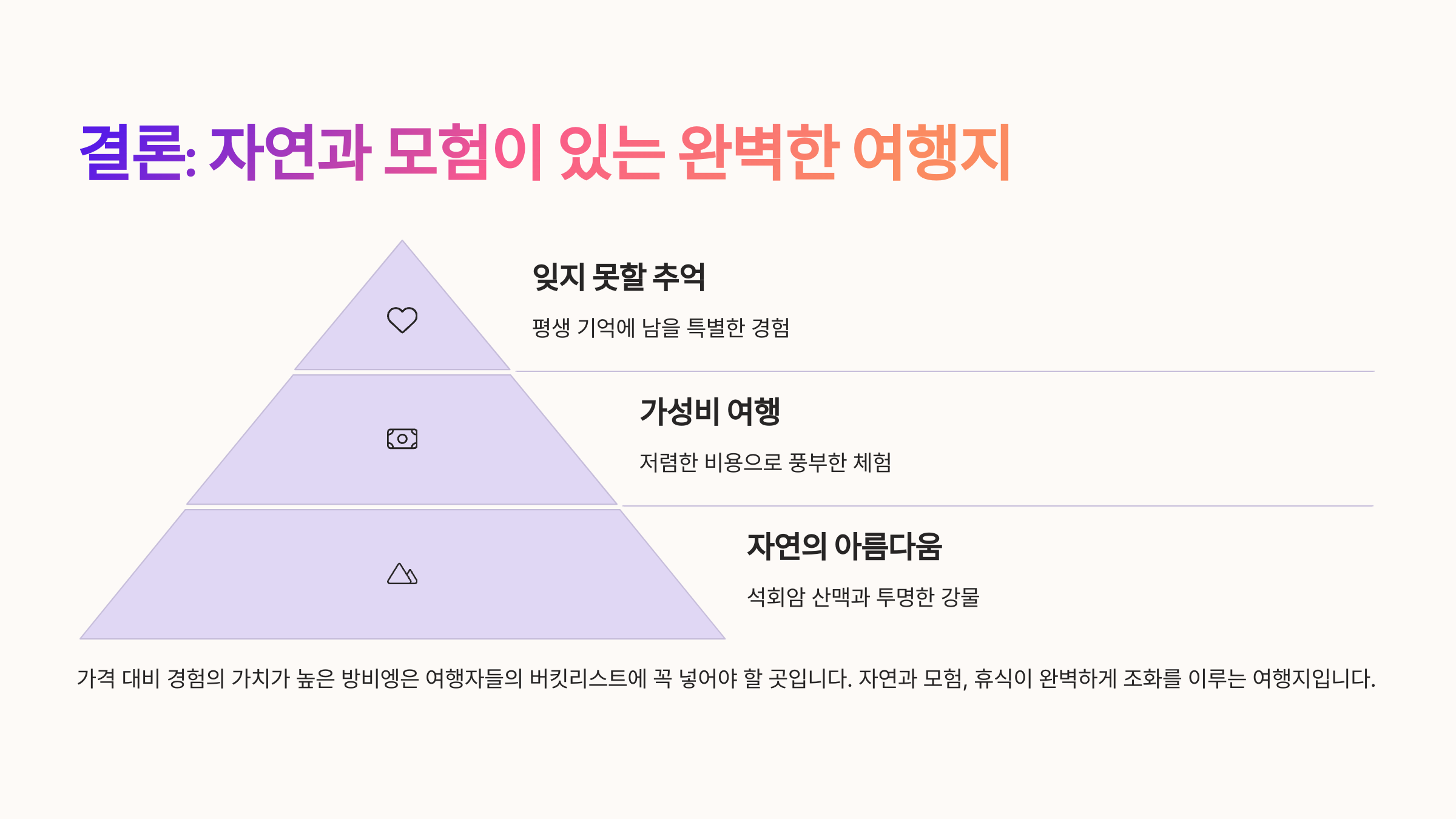 모험, 힐링, 먹거리, 체험까지 다 담은 일정으로 지금 떠나도 완벽한 준비 완료! 🌏💼