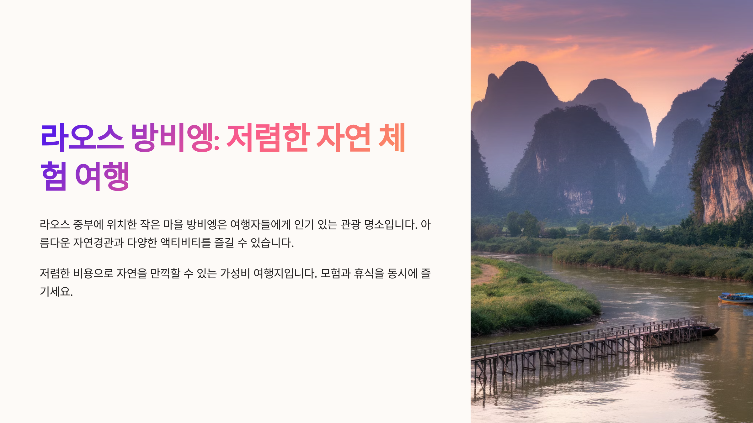 이번 글에서는 방비엥에서 꼭 체험해봐야 할 자연 액티비티부터, 가족 단위 여행자를 위한 팁, 자주 묻는 질문까지 총정리했어요. 놓치면 아쉬운 정보들만 모았으니 끝까지 함께해요!