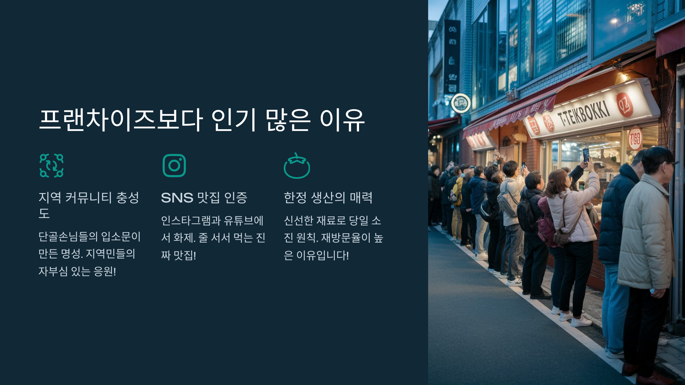 그래서 요즘 SNS에서도 “요즘은 프랜차이즈보다 이런 동네 떡볶이가 진짜다!”라는 글들이 넘쳐나는 거예요. ✨
