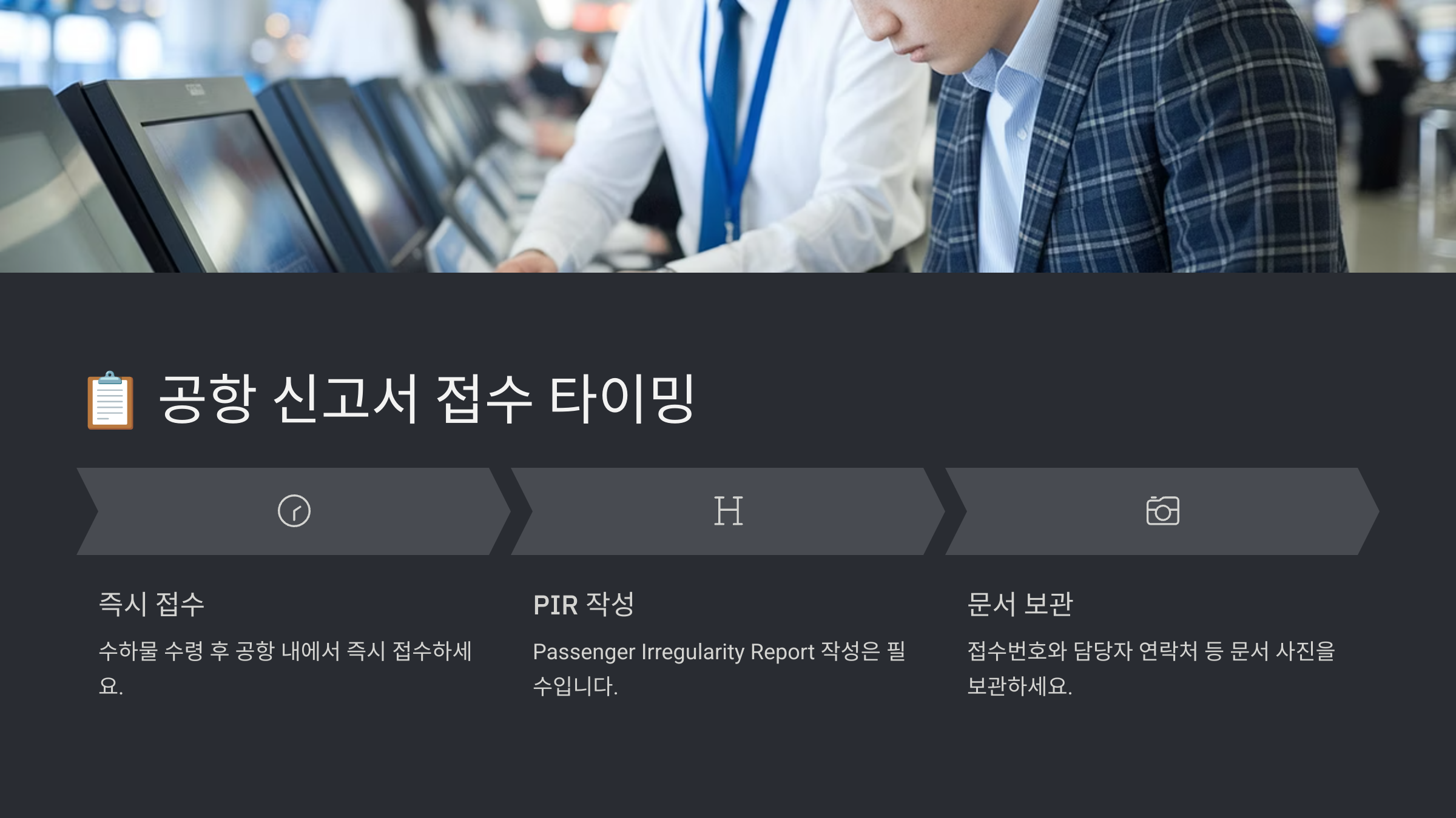| 수하물 데스크 방문 | 파손된 캐리어 즉시 신고 |