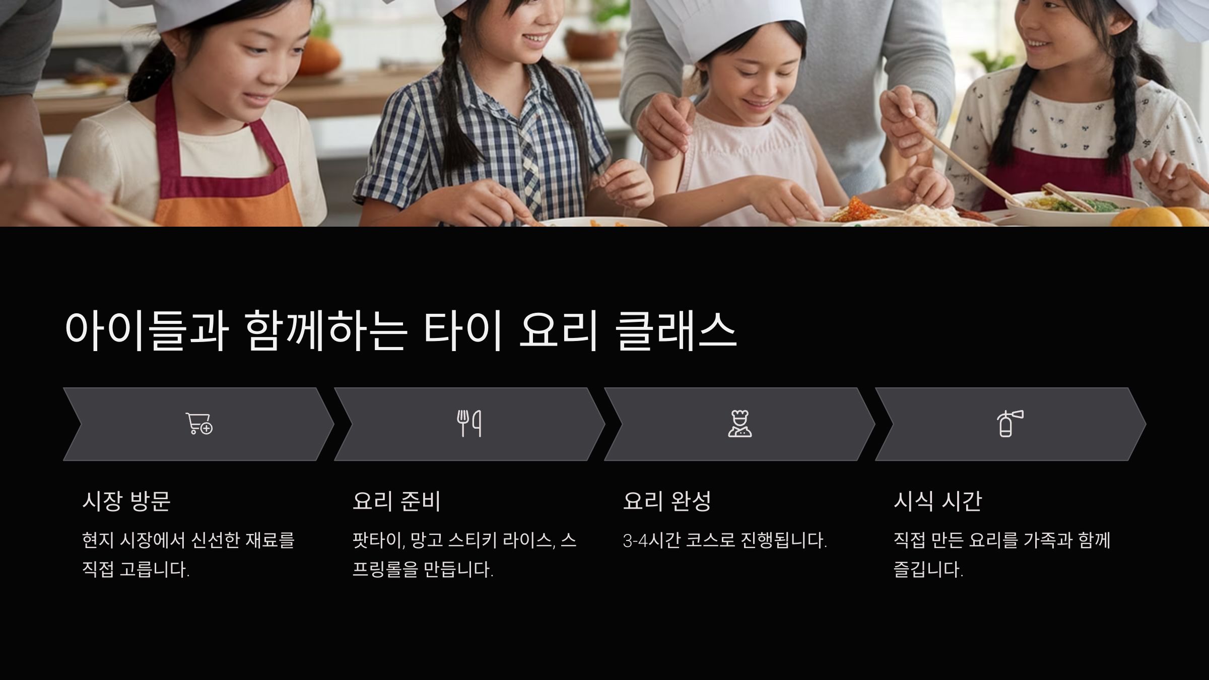👇 요리 클래스는 온 가족이 즐기는 체험이에요!