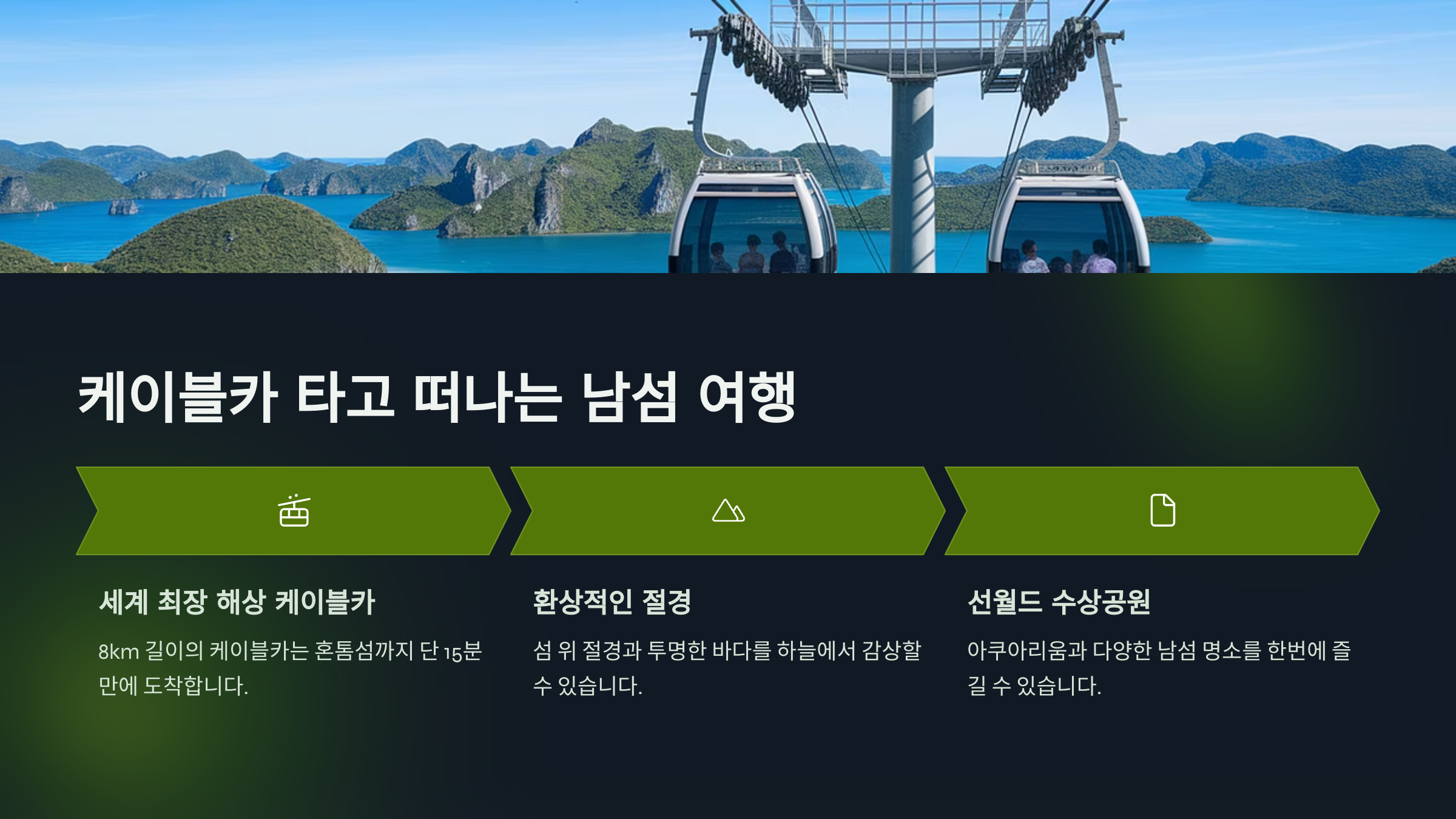 | 푸꾸옥 → 혼톰 | 약 15분 | 세계 최장 해상 케이블카 |