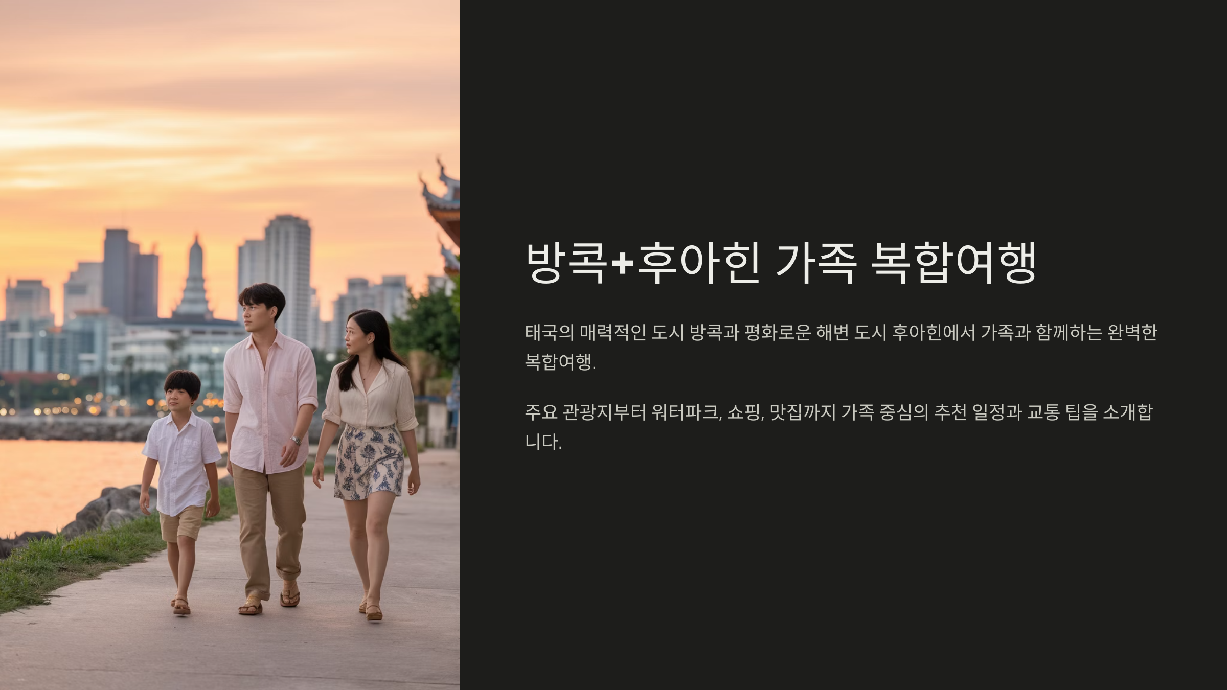2025년 방콕과 후아힌은 가족 여행지로 여전히 최고예요! 😊 다양한 워터파크, 재밌는 시내 투어, 맛있는 음식과 편리한 대중교통까지! 특히 어린이와 어른 모두가 만족할 수 있는 요소가 가득하답니다.