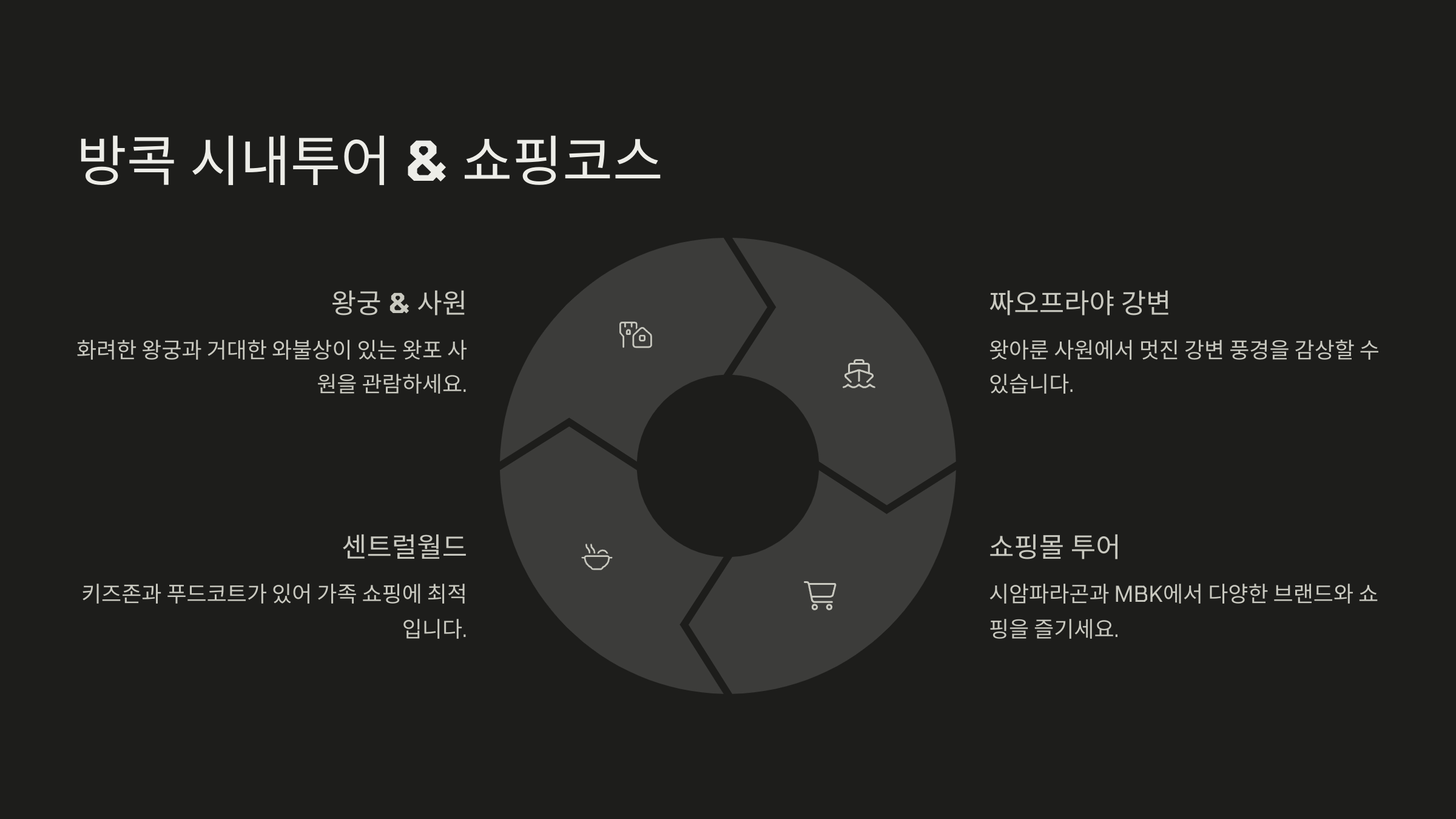 👇 이어서 방콕 시내투어 & 쇼핑코스부터 알아볼게요!