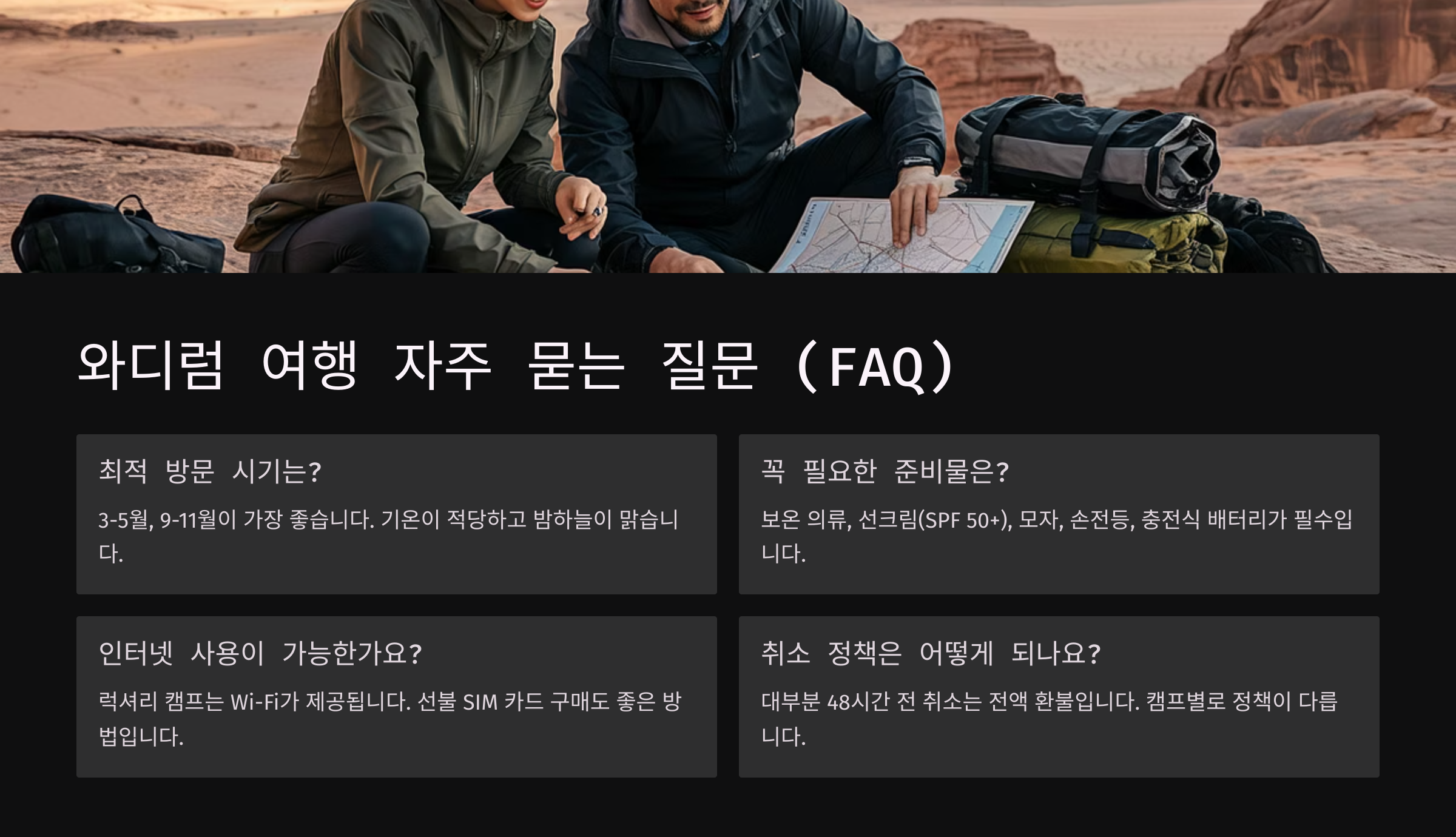 ❓ 와디럼 여행 자주 묻는 질문 (FAQ)