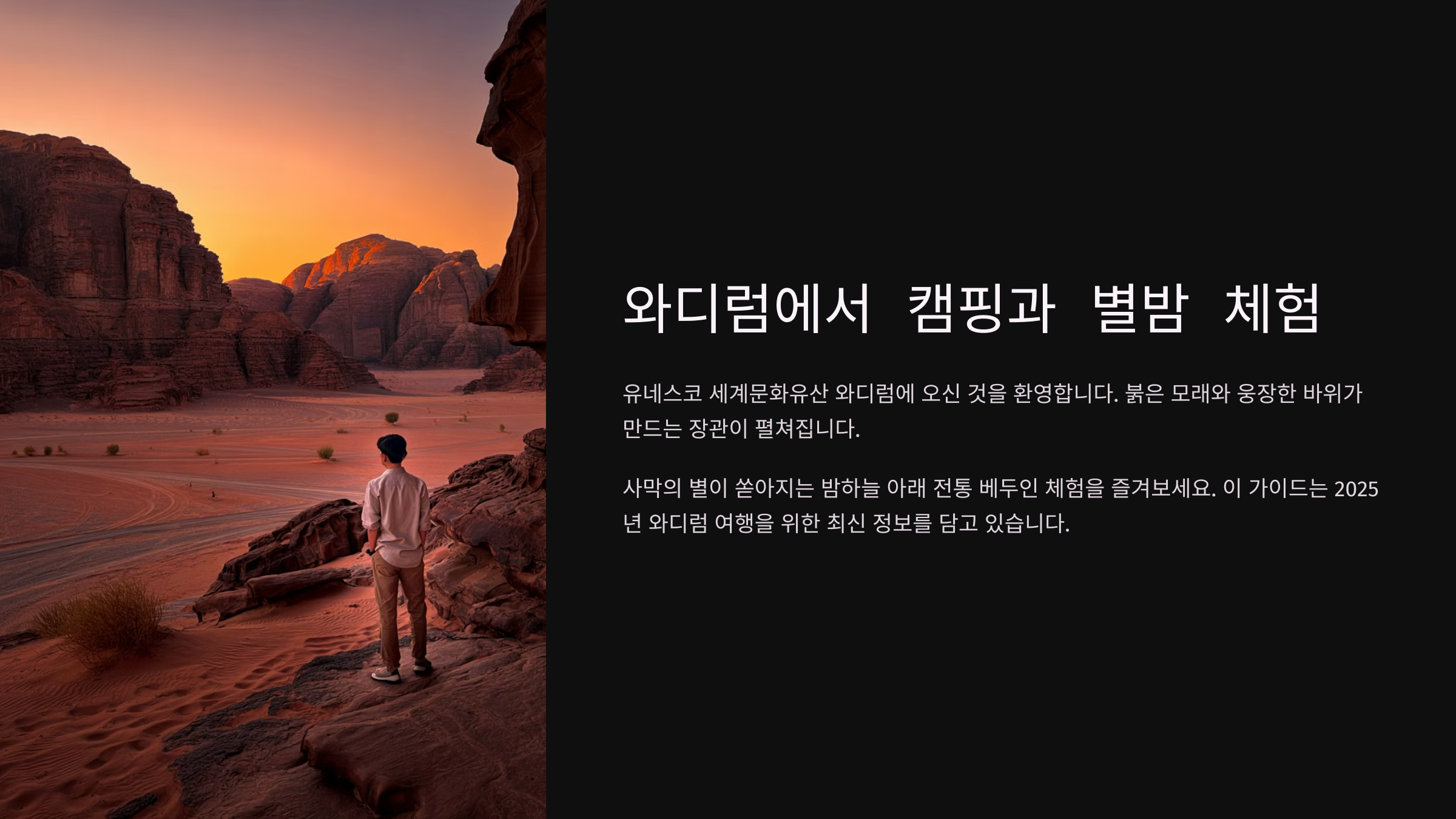 그럼 지금부터 와디럼 캠핑의 모든 것을 파헤쳐볼게요. 제가 직접 체험하고 조사한 내용을 바탕으로 한 리얼 가이드라서 더 생생하게 느껴질 거예요. 캠핑장 비교부터 별 관측 스팟, BBQ까지 쏙쏙 담았어요!