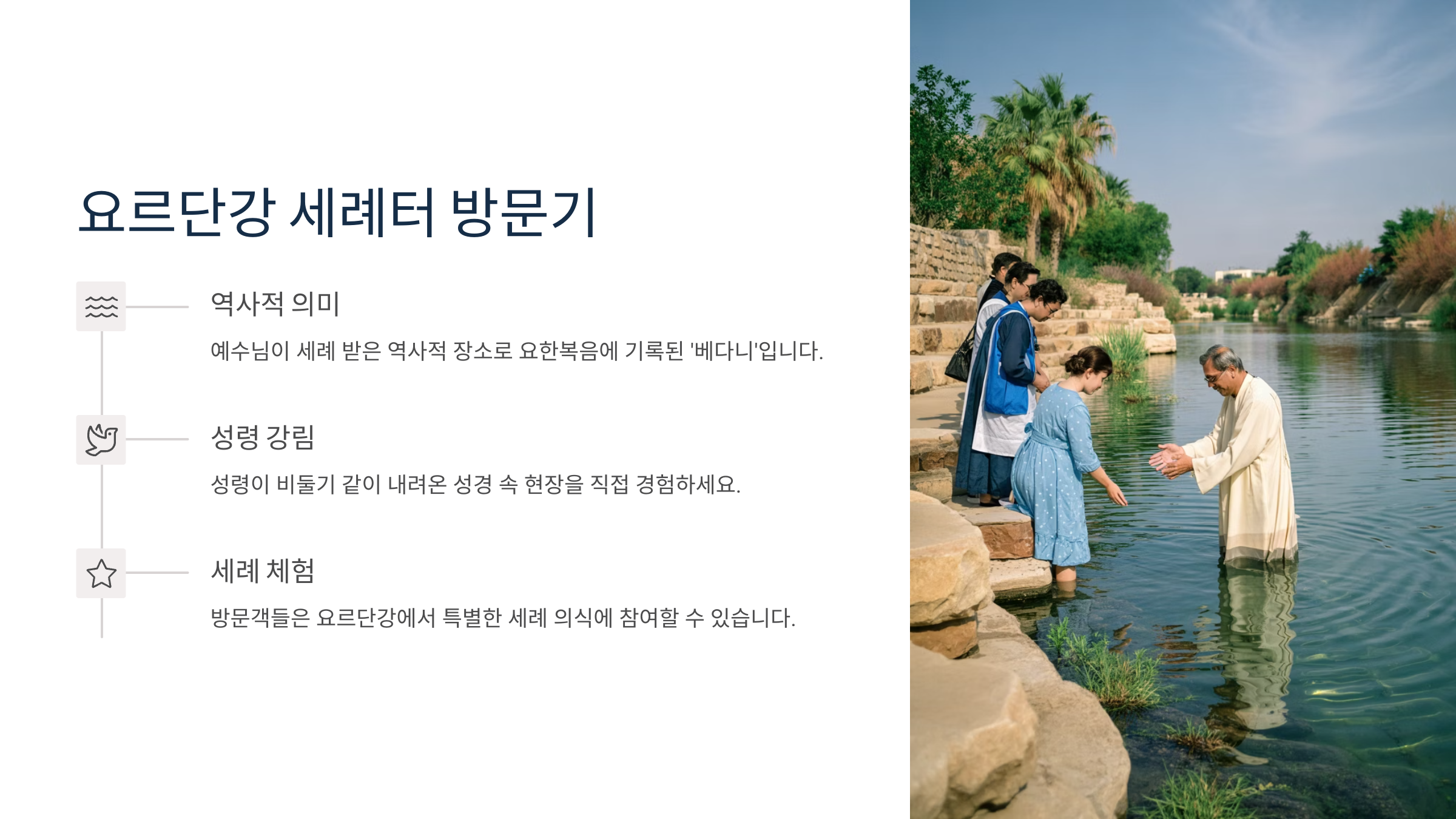 🙌 당신도 물에 발을 담그며 신앙의 순간을 되새기고 싶다면, 꼭 이곳을 여행 일정에 포함해보세요!