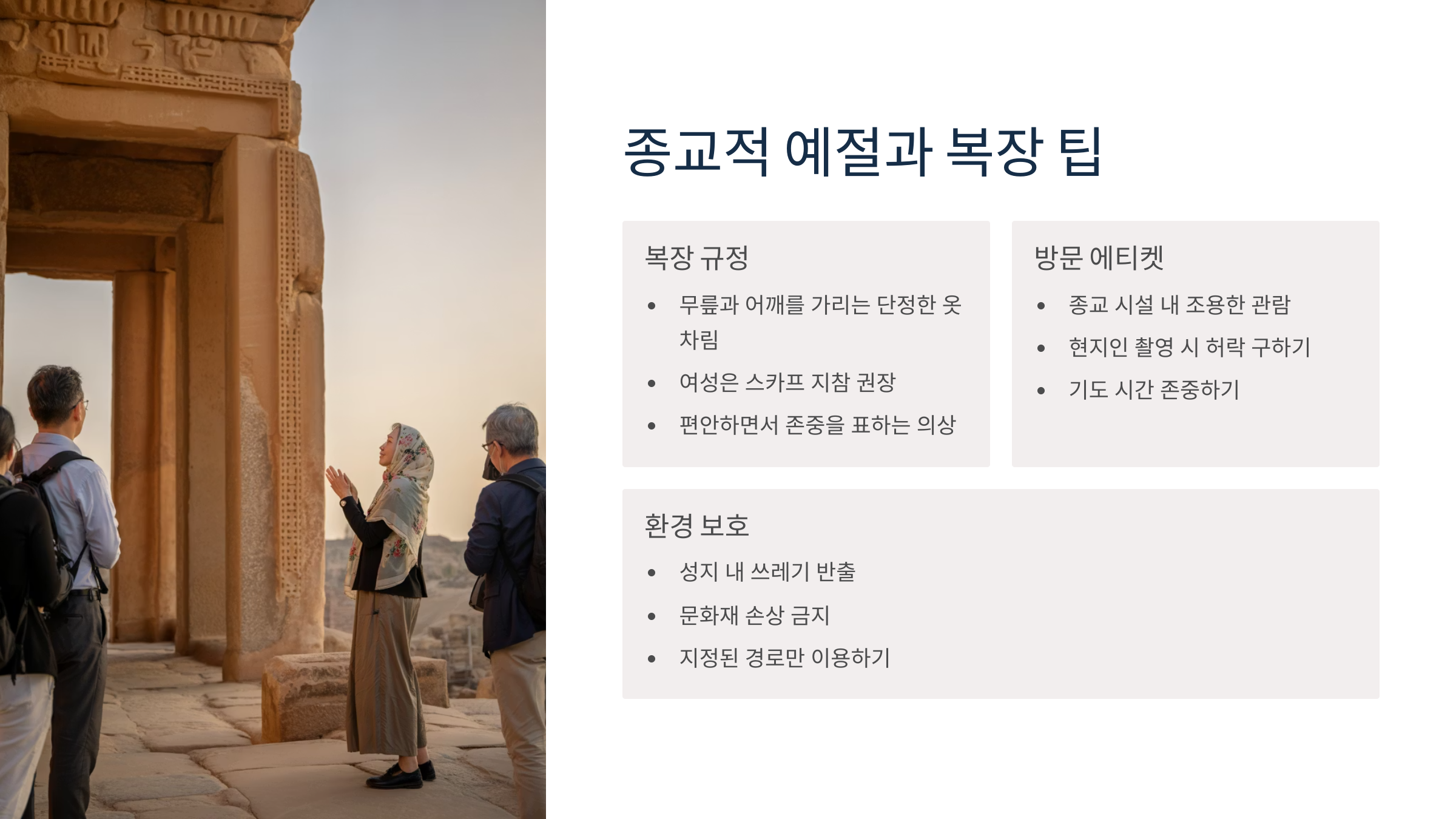 🧕 준비된 복장과 마음가짐으로, 요르단의 거룩한 땅에서 깊은 감동을 경험해보세요!