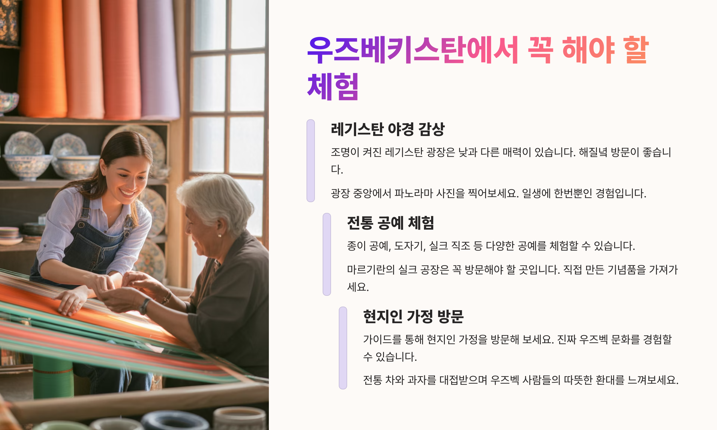 🧵 우즈베키스탄에서 꼭 해야 할 체험