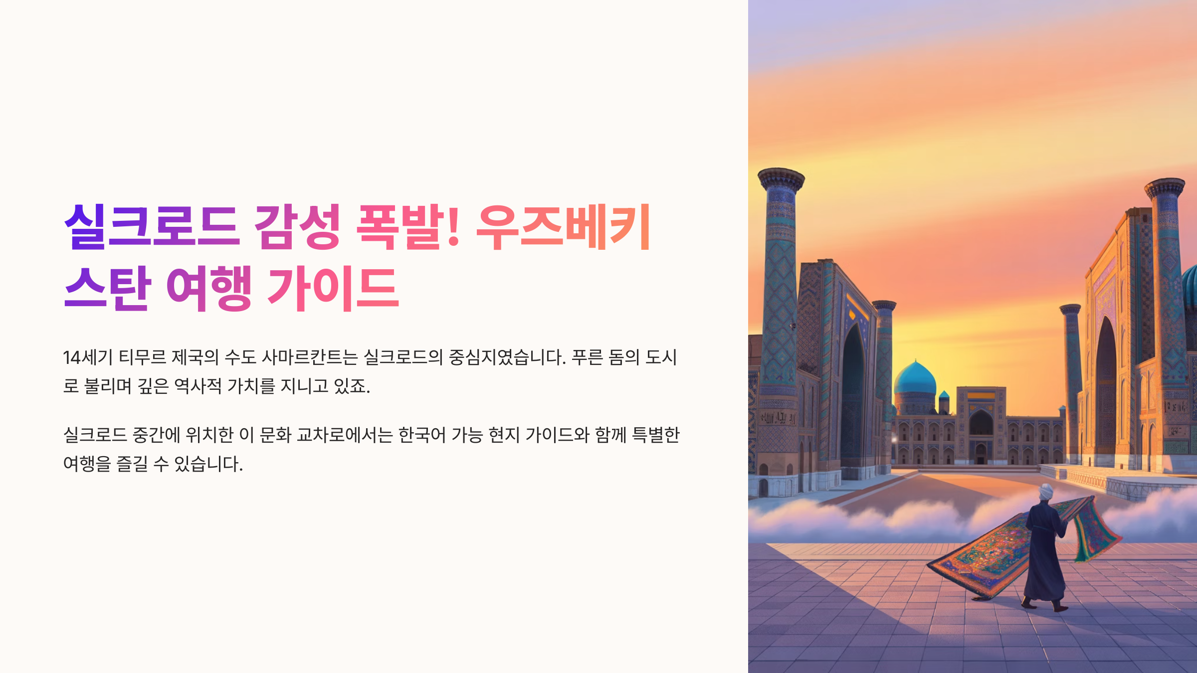 🕌 실크로드 감성 폭발! 우즈베키스탄 여행 가이드