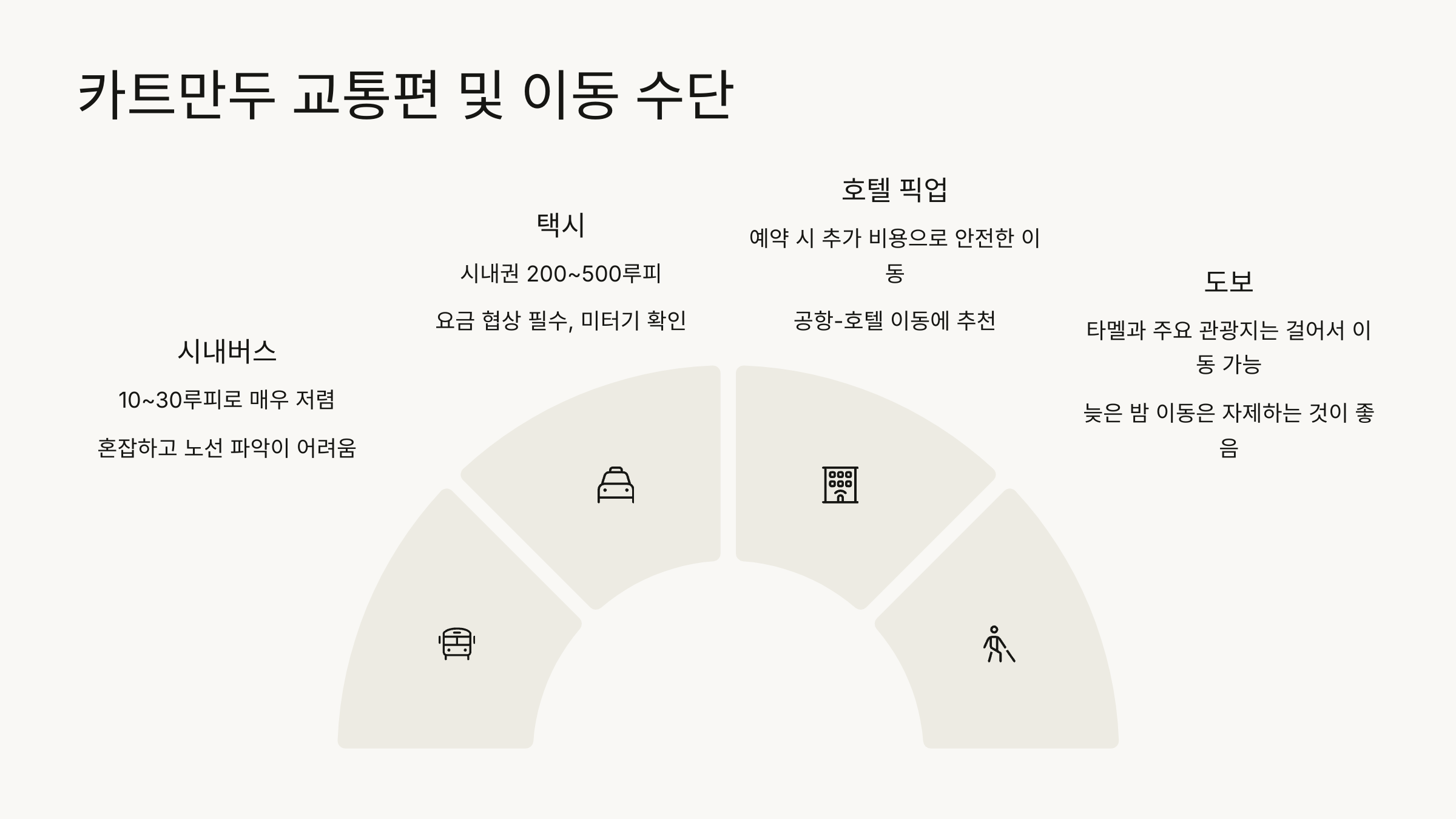 네팔 여행에서 가장 중요한 건 '어떻게 이동할까?'예요. 특히 초보 여행자라면 이동 수단을 미리 알고 있으면 훨씬 수월하게 움직일 수 있답니다. 먼저 카트만두 시내는 도보와 택시가 가장 일반적이에요.