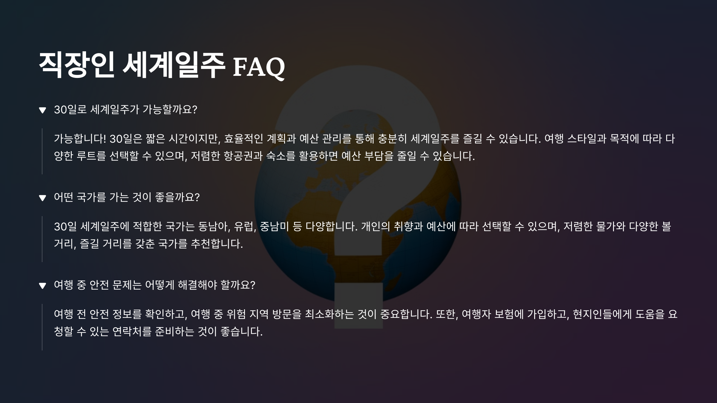 직장인 세계일주 관련 자주 묻는 질문 (FAQ) ❓