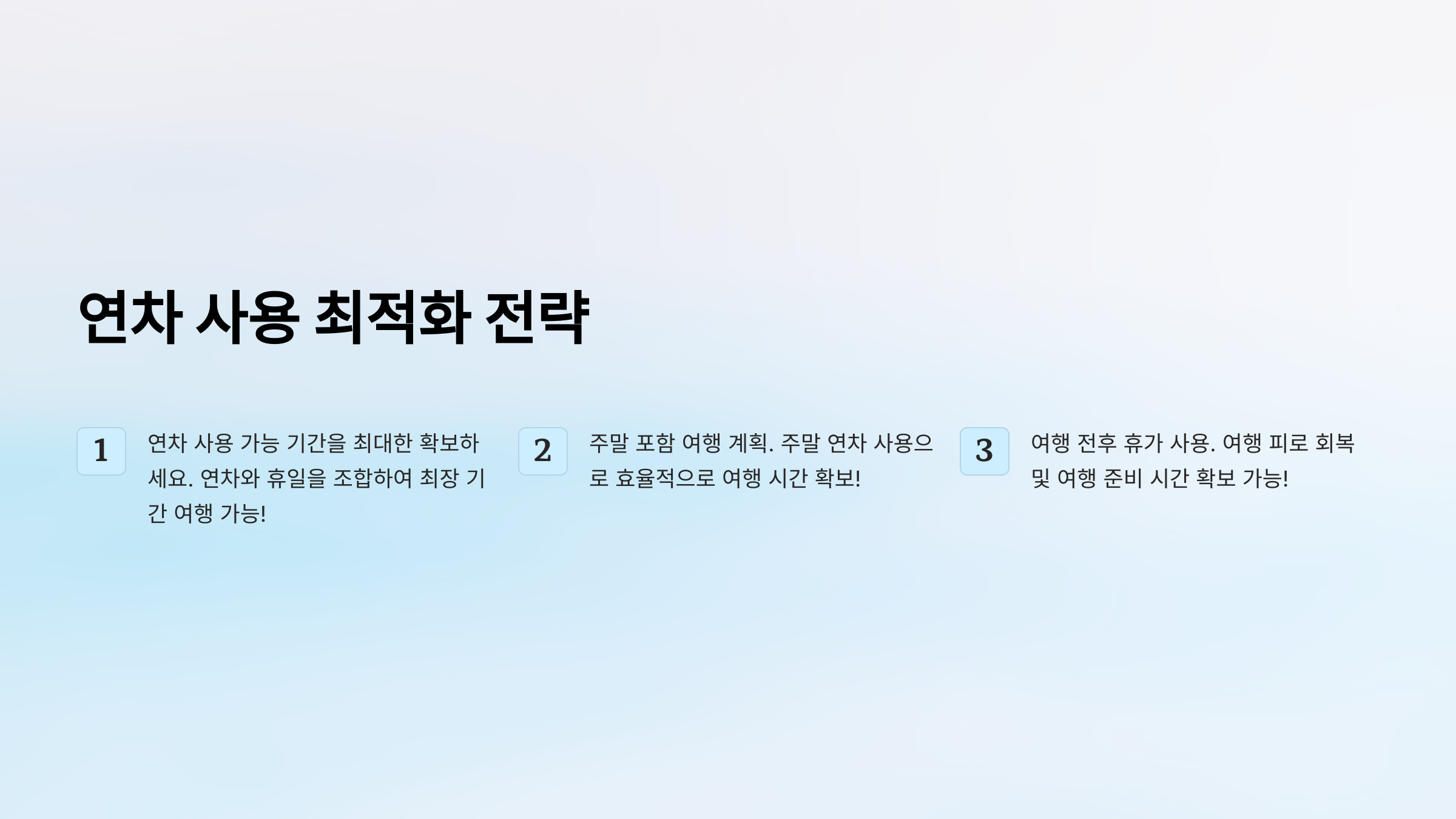 이제 다음 섹션에서는 연차를 최적화해서 최대한 활용하는 방법을 알려드릴게요! 🚀
