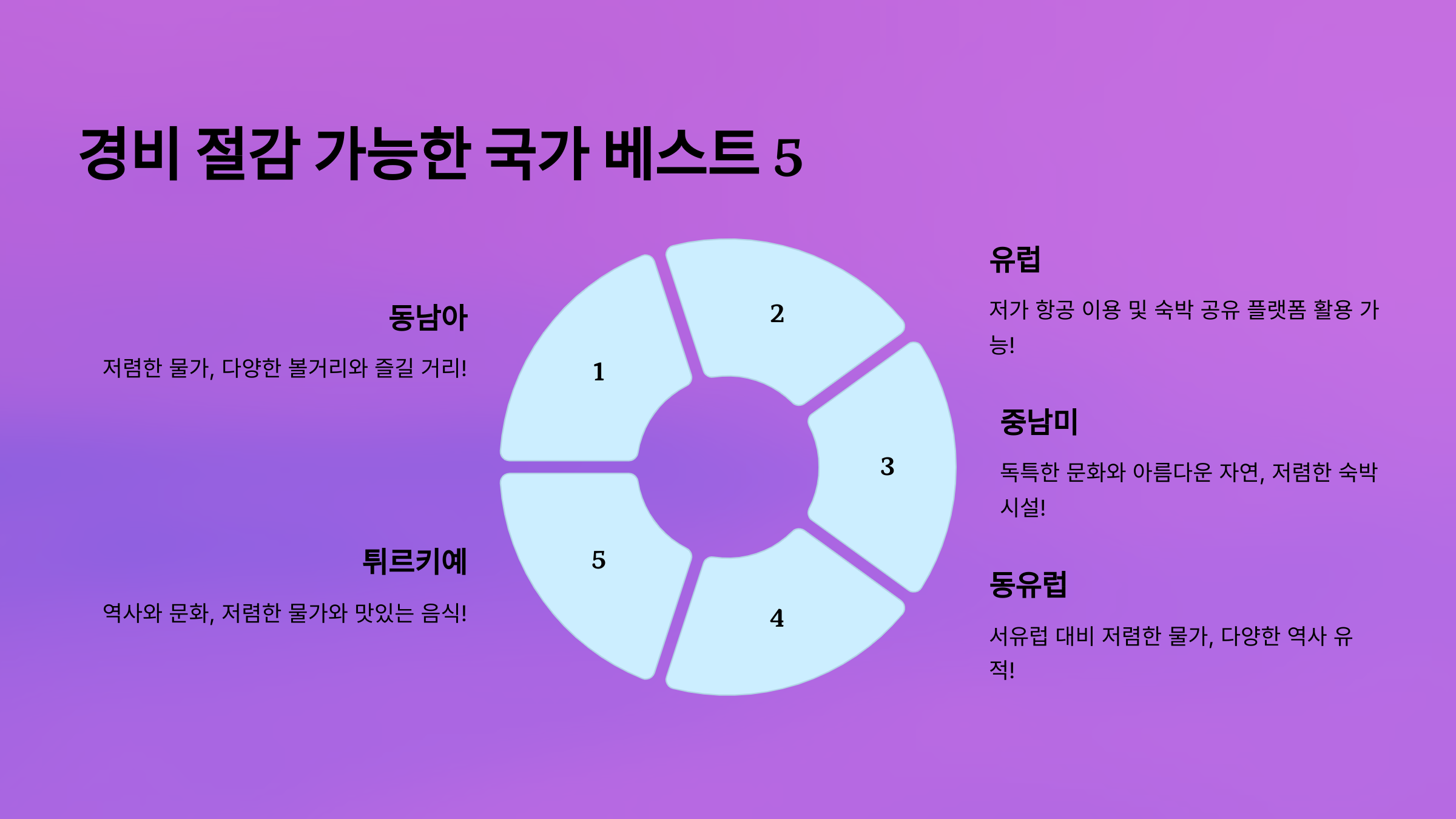 이제 항공권과 숙소까지 완벽하게 준비됐어요! 다음 섹션에서는 경비 절감이 가능한 국가를 추천해 드릴게요. 🌎💰