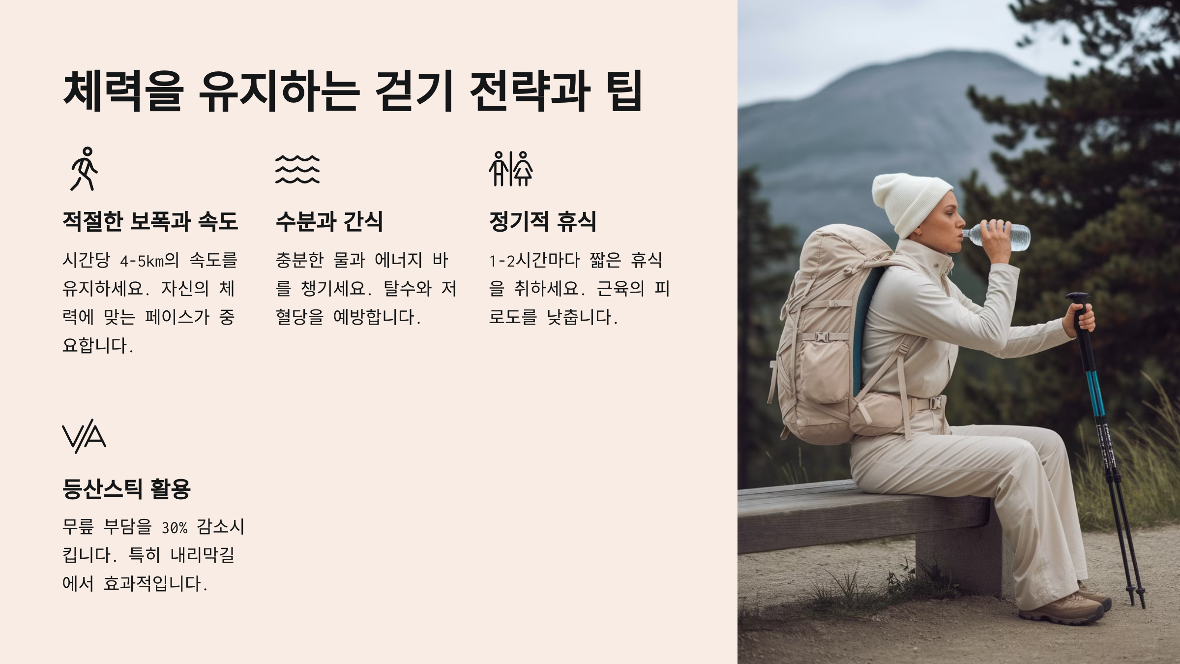 👉 다음은 **체력을 유지하는 걷기 전략과 팁**입니다! 🚶♂️🔥