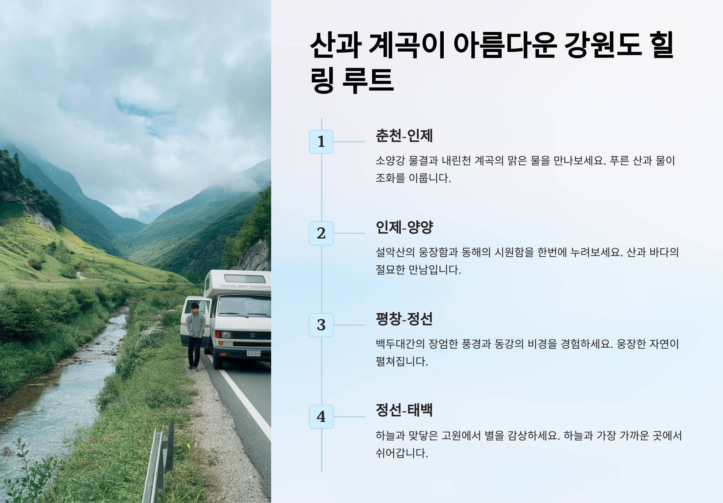 🏔️ 이제 산과 계곡이 아름다운 강원도 캠핑카 여행 코스를 살펴볼까요?