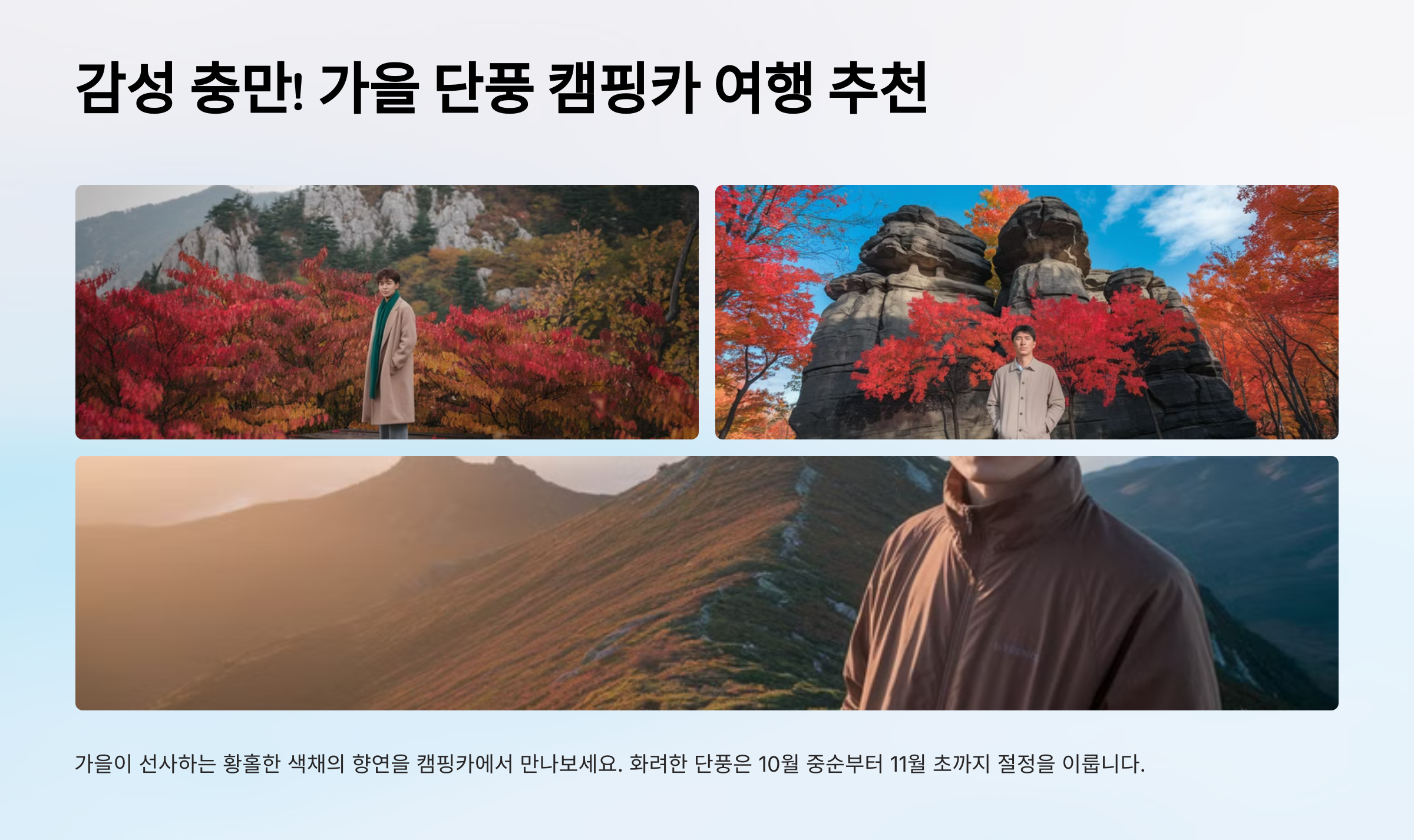 🍁 가을 단풍 시즌에 떠나기 좋은 캠핑카 여행지는 어디일까요? 다음 섹션에서 확인해봐요!