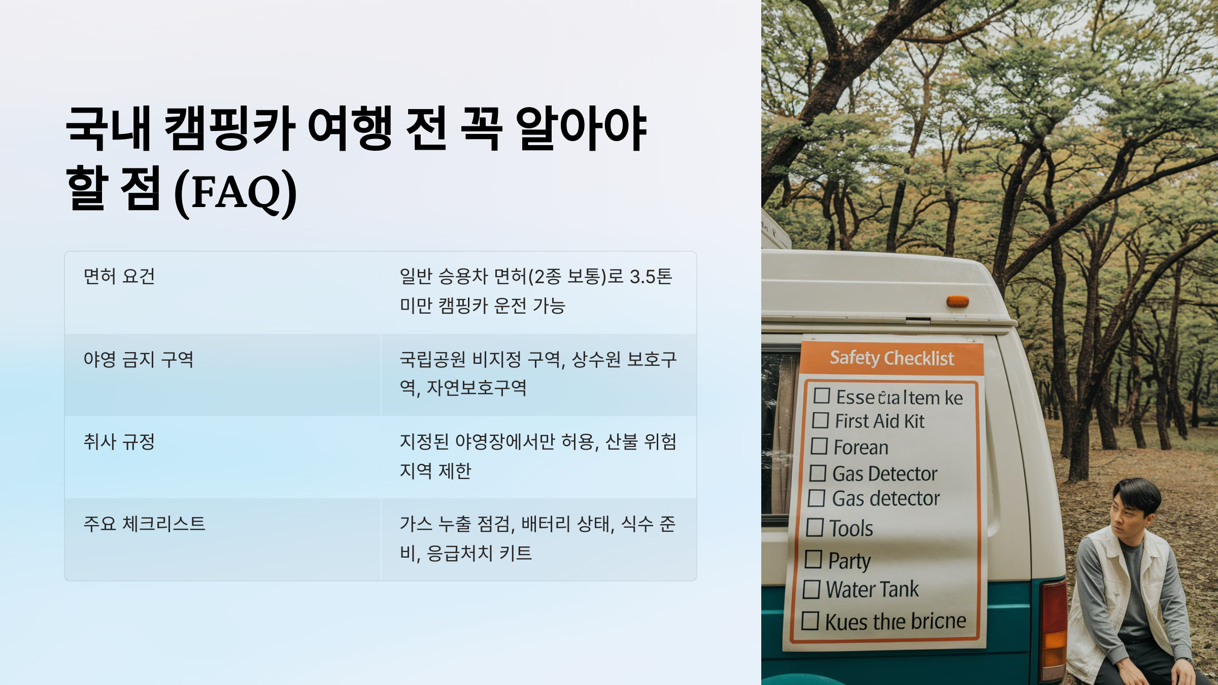 ✔ 국내 캠핑카 여행 전 꼭 알아야 할 점 (FAQ)