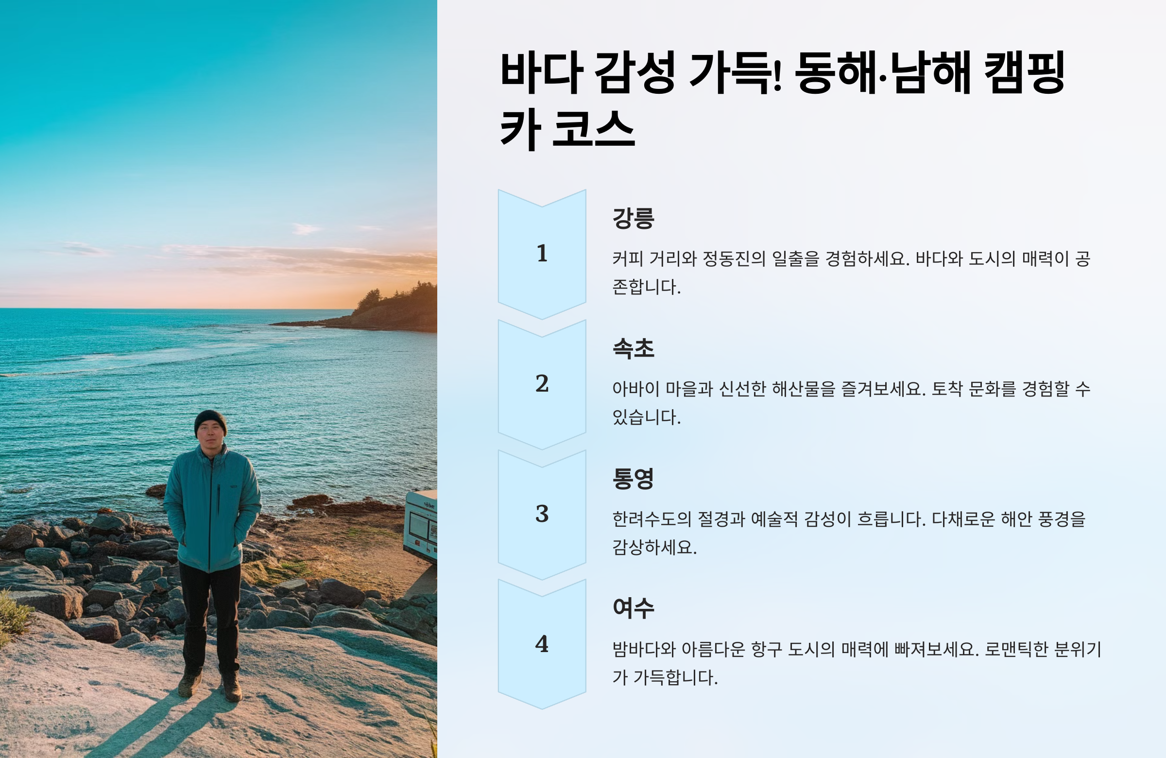 🌊 이제 바다 감성이 가득한 동해와 남해 캠핑카 코스를 알아볼까요?