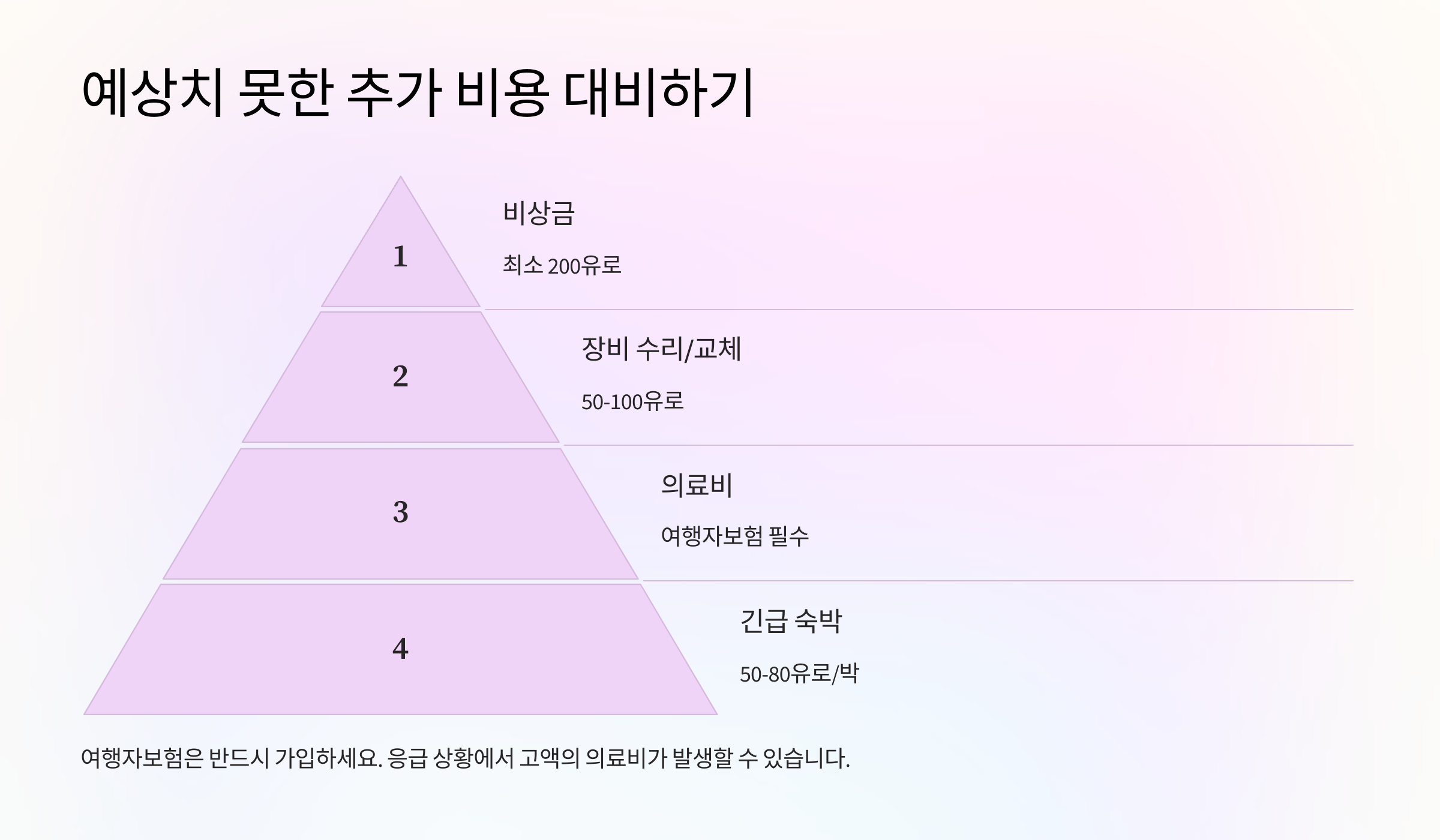 | 장비 교체 | €10~€50 | 출발 전 신발, 배낭 등 철저히 점검 |