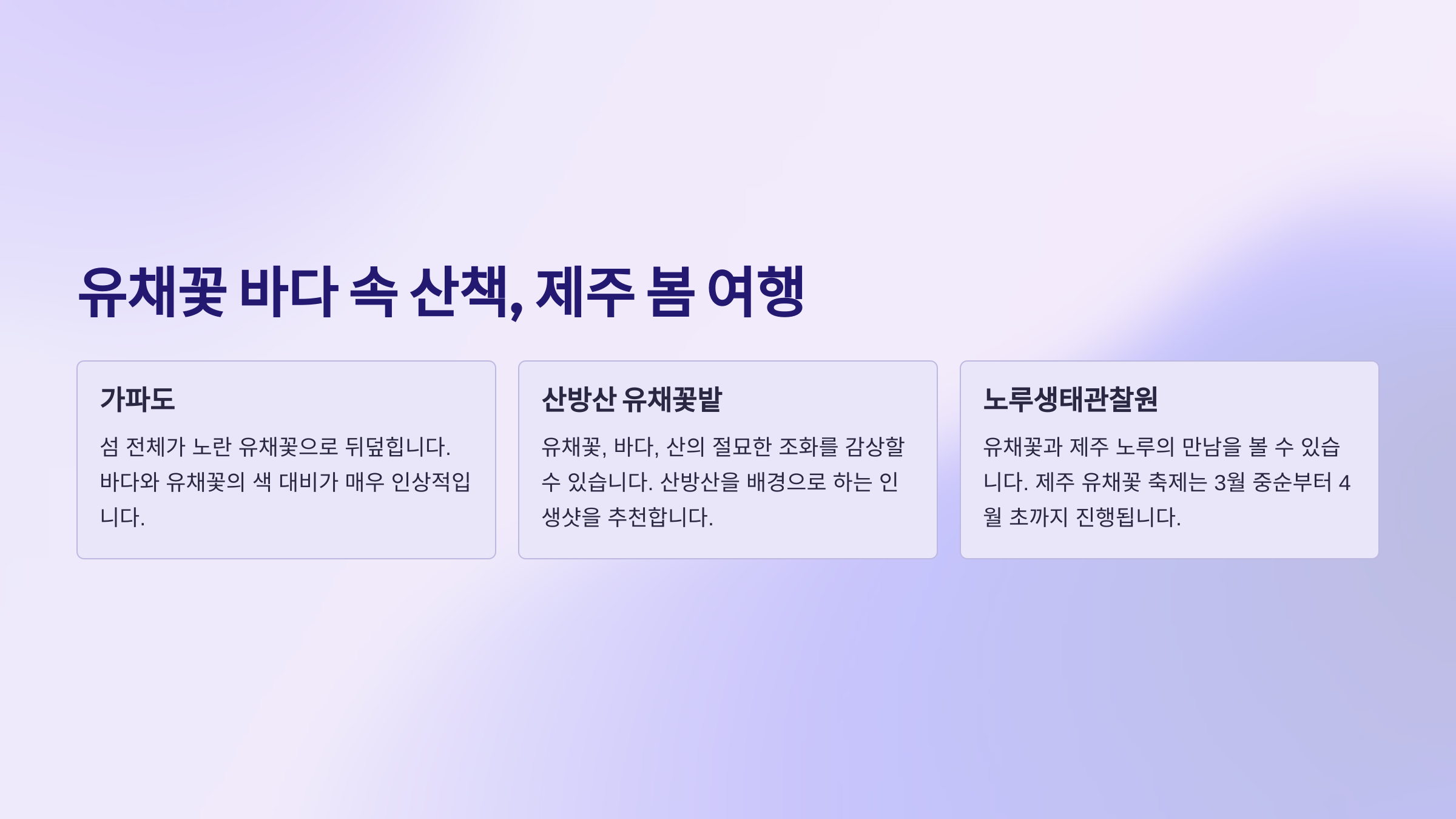 🌼 다음은 노란 유채꽃이 가득한 제주도의 봄 여행지 소개예요!