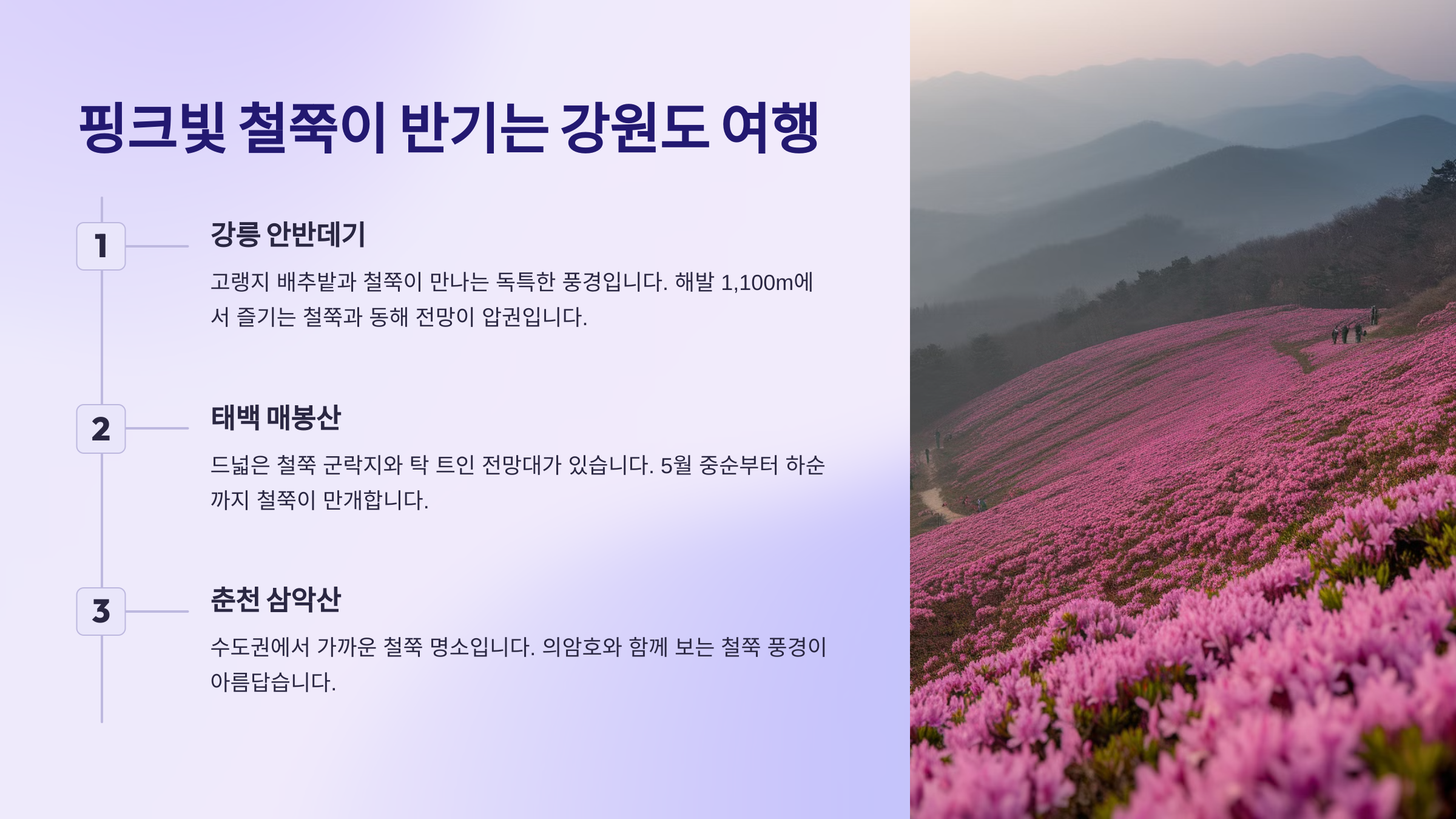 🌸 다음은 핑크빛 철쭉이 반기는 강원도 여행지를 소개할게요!