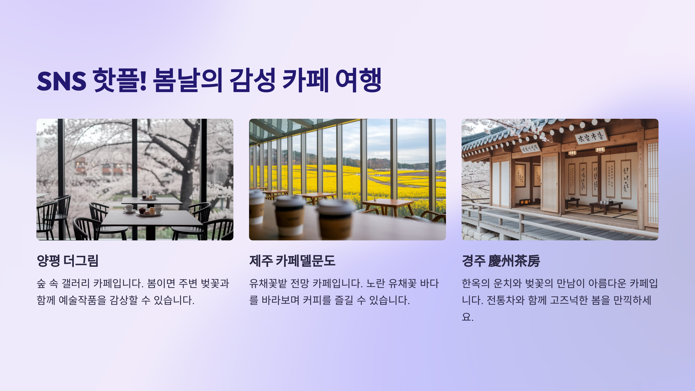☕ 다음은 SNS 핫플! 봄날의 감성 카페 여행지를 소개할게요!