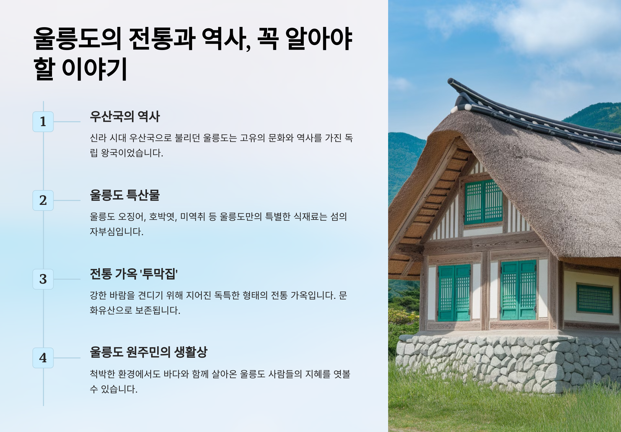 👉 다음 섹션인 **"울릉도의 전통과 역사, 꼭 알아야 할 이야기"** 자동 출력됩니다! 📜