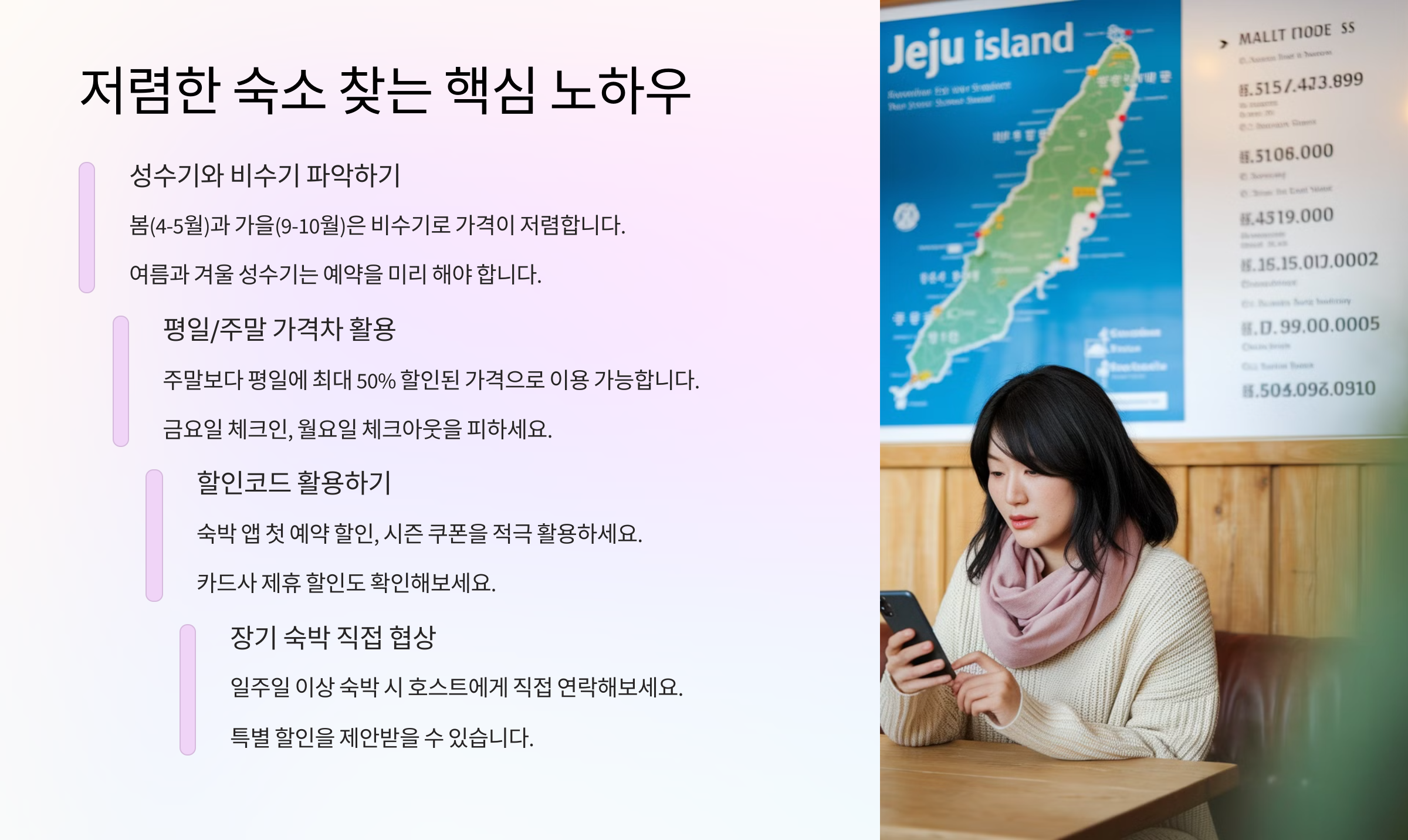 제주에서 한 달 살기나 장기 여행을 계획하고 있다면 숙소 비용이 부담될 수 있어요. 하지만 몇 가지 팁만 잘 활용하면 비용을 크게 절약할 수 있답니다!